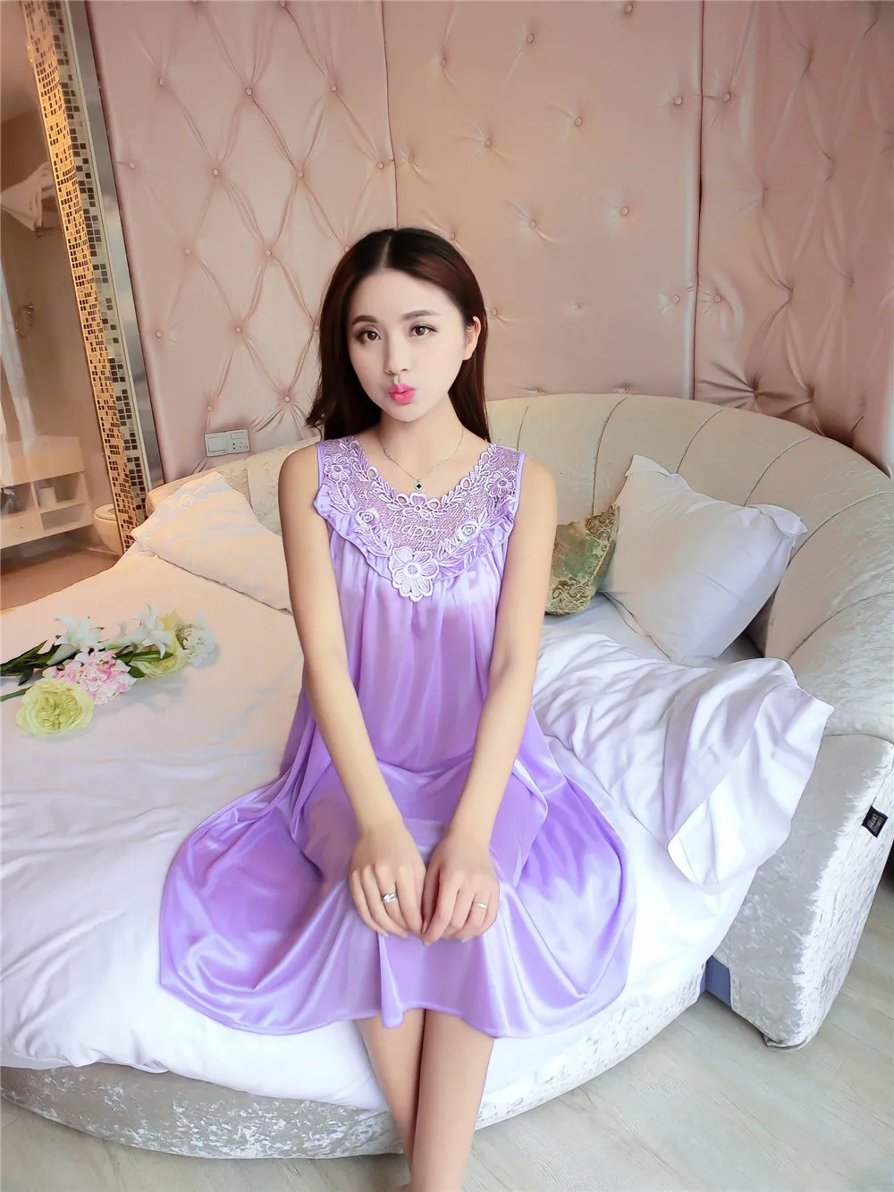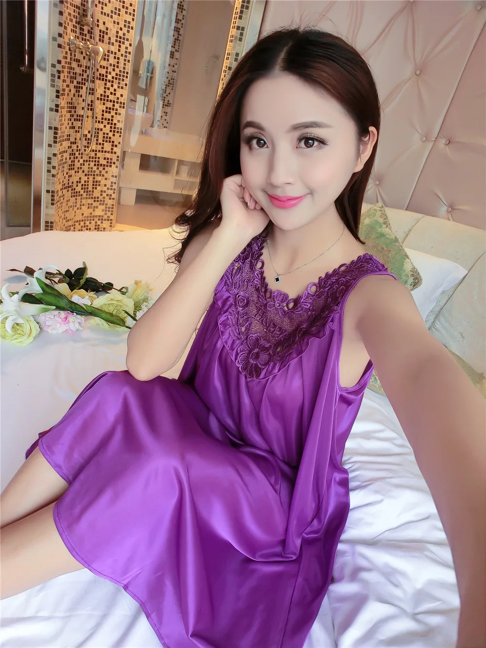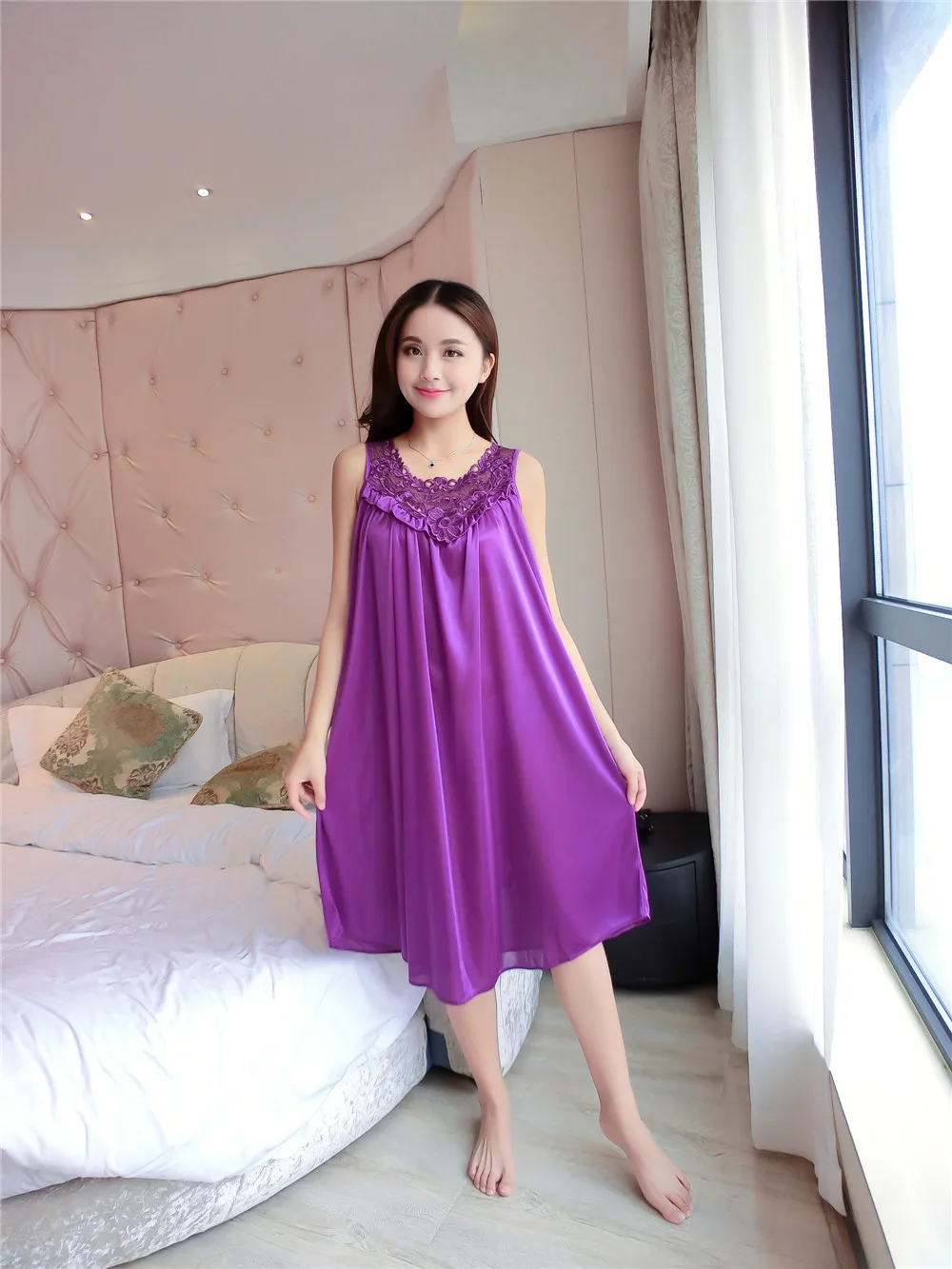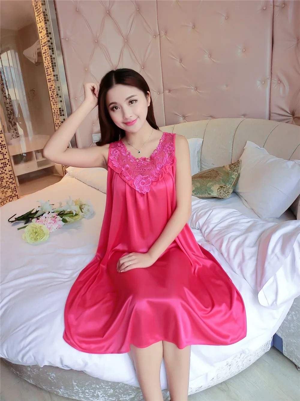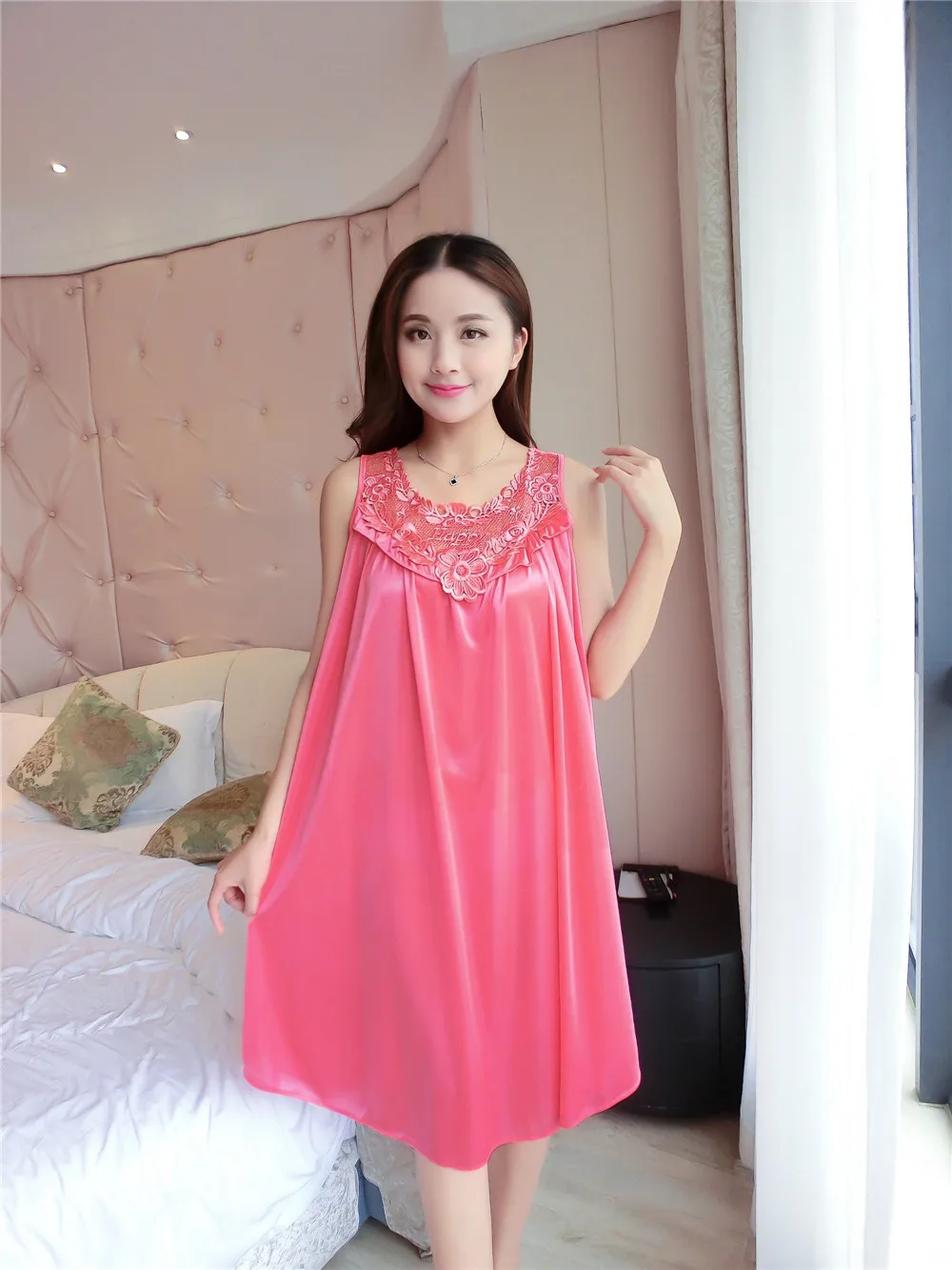 Женское сексуальное шелковое атласное Ночное платье без рукавов размера плюс 4XL, ночная рубашка, длинная ночная рубашка, кружевное ночное белье для женщин