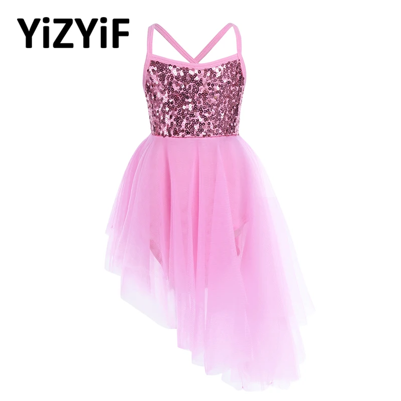 Новинка 2021, одежда для гимнастики для девочек, балетное платье без рукавов с блестками, Тюлевое платье для танцев и выступлений, детские платья