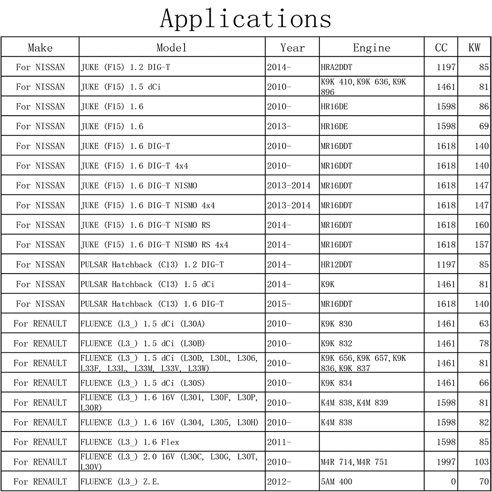 Для NISSAN JUKE (F15) 1,2 DIG-T 2014-Для NISSAN JUKE (F15) 1,5 dCi 2010-Для NISSAN JUKE (F15) 1,6 2010-Для NISSAN JUKE (F15) 1,6 2013-Для NISSAN JUKE (F15) 1,6 DIG-T 2010-Для NISSAN JUKE (F15) 1,6 DIG-T 4x4 2010-Для NISSAN JUKE (F15) 1,6 DIG-T NISMO 2013-2014Для NISSAN JUKE (F15) 1,6 DIG-T NISMO 4x4 2013-2014Для NISSAN JUKE (F15) 1,6 DIG-T NISMO RS 2014-Для NISSAN JUKE (F15) 1,6 DIG-T NISMO RS 4x4 2014-Для NISSAN PULSAR хэтчбек (C13) 1,2 DIG-T 2014-Для NISSAN PULSAR хэтчбек (C13) 1,5 dCi 2014-Для NISSAN PULSAR хэтчбек (C13) 1,6 DIG-T 2015-Для RENAULT FLUENCE (L3 _) 1,5 dCi (L30A) 2010-Для RENAULT FLUENCE (L3 _) 1,5 dCi (L30B) 2010-Для RENAULT FLUENCE (L3 _) 1,5 dCi (L30D, L30L, L306, L33F, L33L, L33M, L33V, L33W) 2010-Для RENAULT FLUENCE (L3 _) 1,5 dCi (L30S) 2010-Для RENAULT FLUENCE (L3 _) 1,6 16V (L301, L30F, L30P, L30R) 2010-Для RENAULT FLUENCE (L3 _) 1,6 16V (L304, L305, L30H) 2010-Для RENAULT FLUENCE (L3 _) 1,6 Flex 2011-Для RENAULT FLUENCE (L3 _) 2,0 16V (L30C, L30G, L30T, L30V) 2010-Для RENAULT FLUENCE (L3 _) Z.E. 2012-