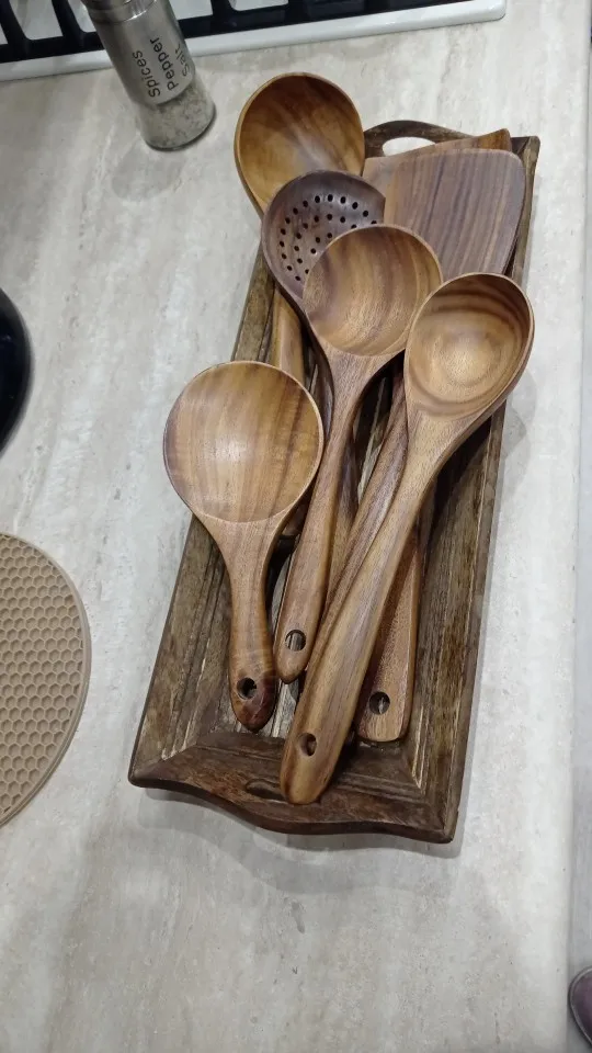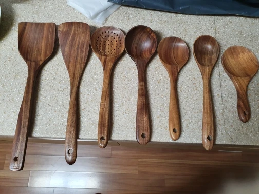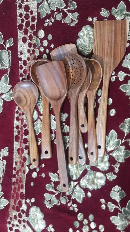 Ложка Из Натурального Тика, 7 шт.компл., ложка, лопатка, лопатка, дуршлаг для риса шумовка для супа, ложка, лопатка, многоразовый набор инструментов для кухни