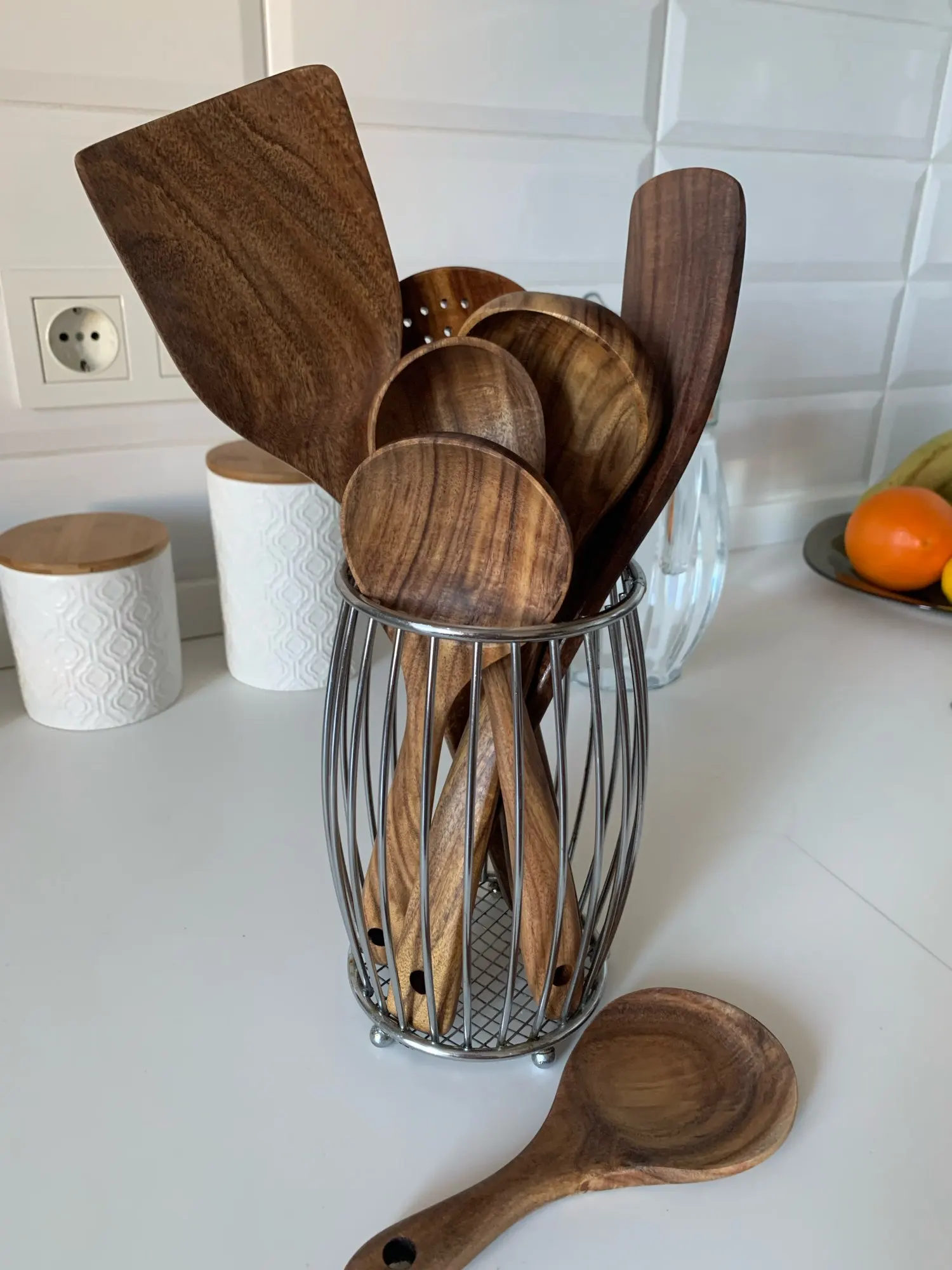 Absolutely flawless design ! Solid, shatterproof and does not damage my pots and pans. Very unique and durable made from soild teak - 100% recommended product!!! Every kitchen needs a set of these!!! Thankyou A++++