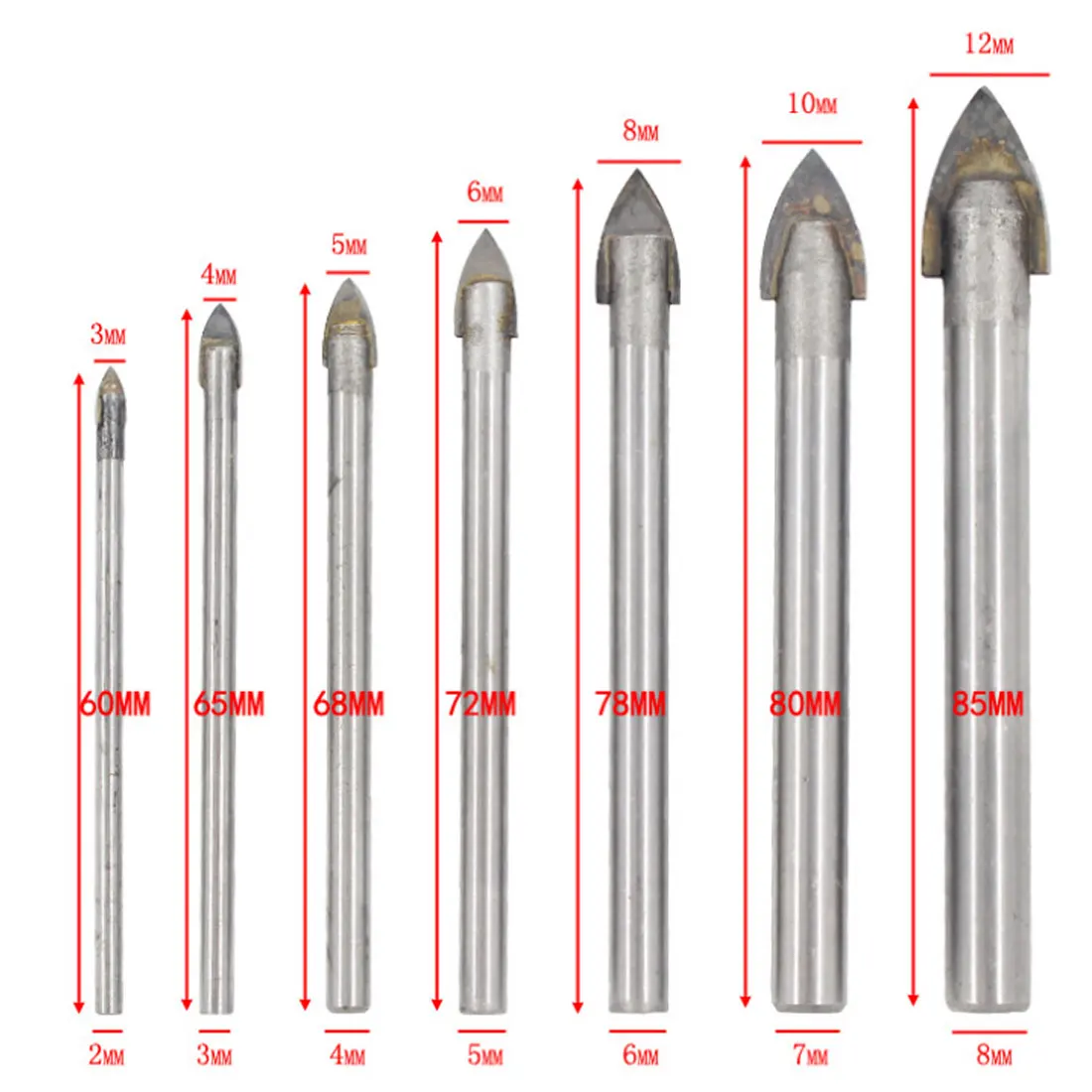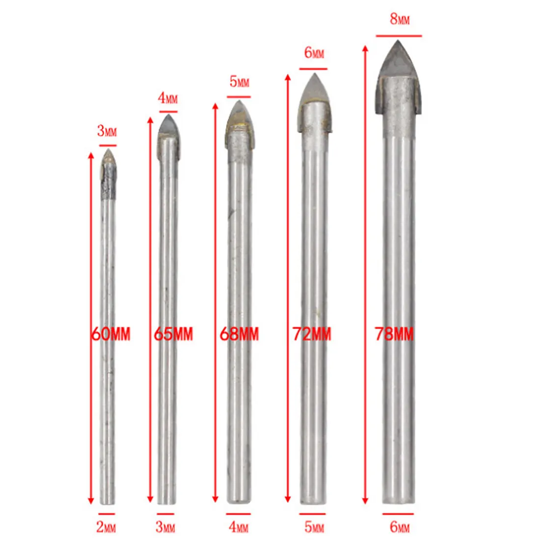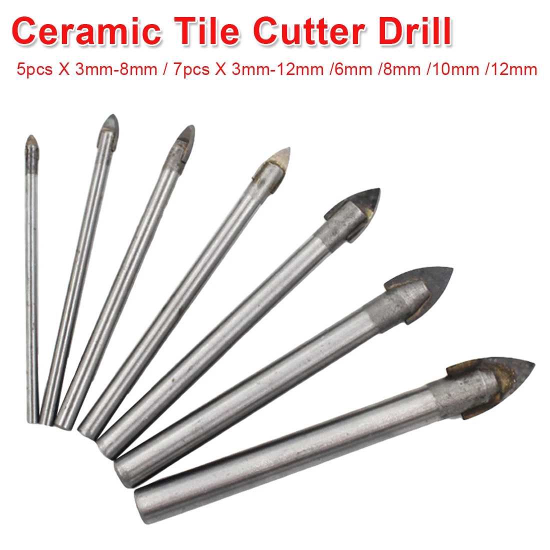 Наконечник из карбида вольфрама для керамической плитки, Круглый хвостовик, набор сверл для стекла, электроинструменты для сверления стеклакерамики sплитки 3-12 мм