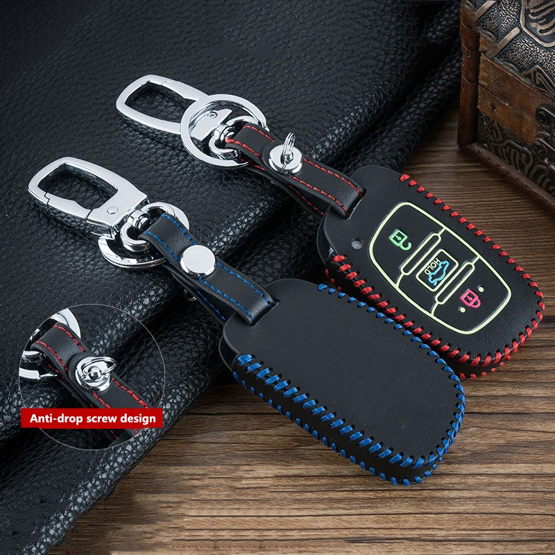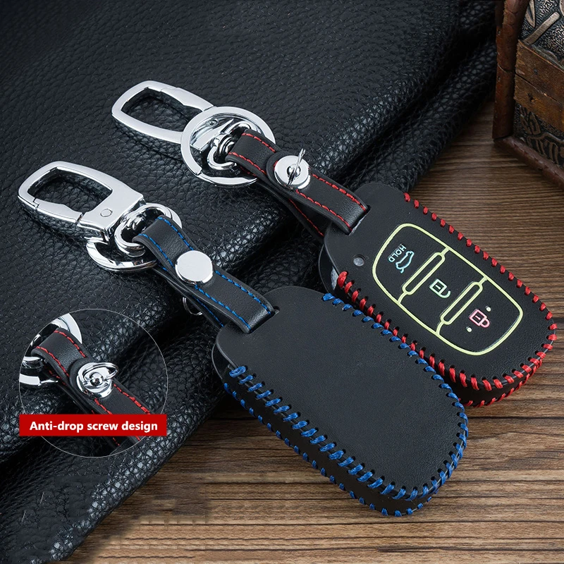 Прошитый вручную светящийся кожаный чехол для автомобильных ключей для Hyundai Tucson Creta i10 ix25 ix35 i20 i30 HB20 Elantra Verna Mistra Santa Fe