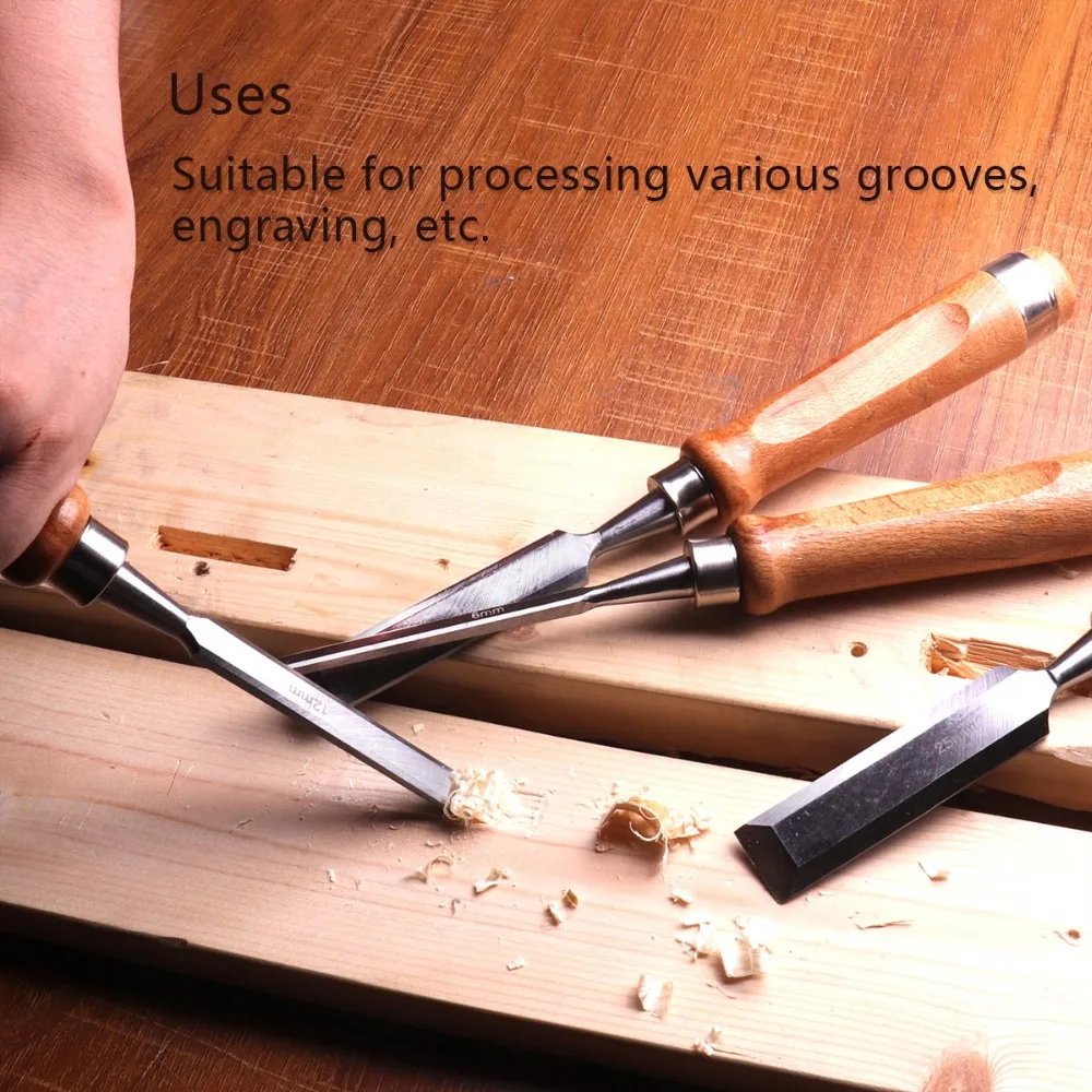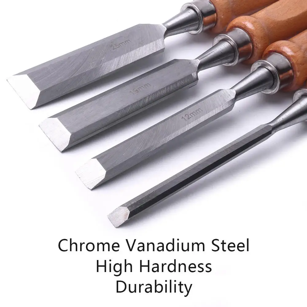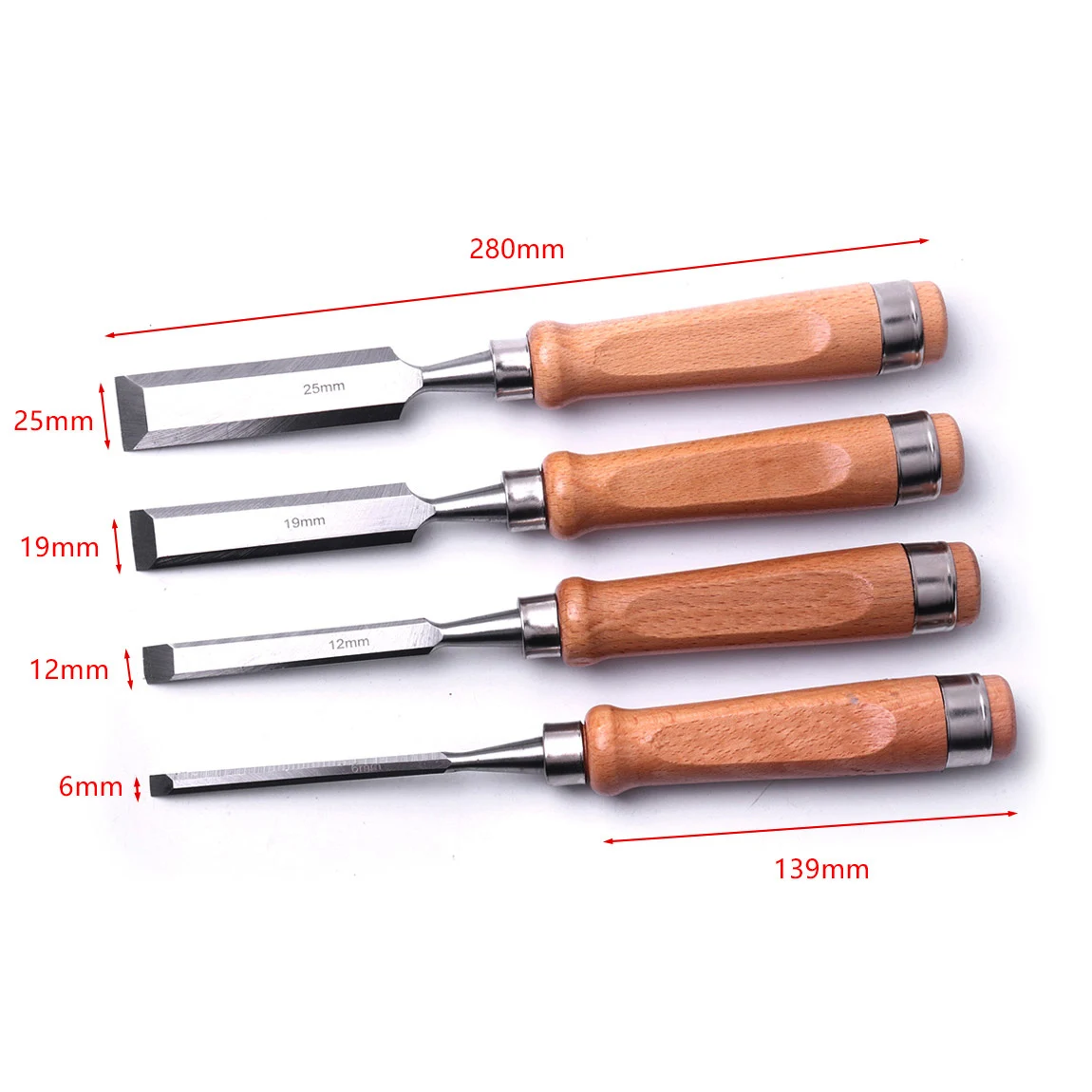 Плоские стамески 6 мм 12 мм 19 мм 25 мм, инструмент для деревообрабатывающие долота из хромованадиевой стали, ручное долото для резьбы по дереву