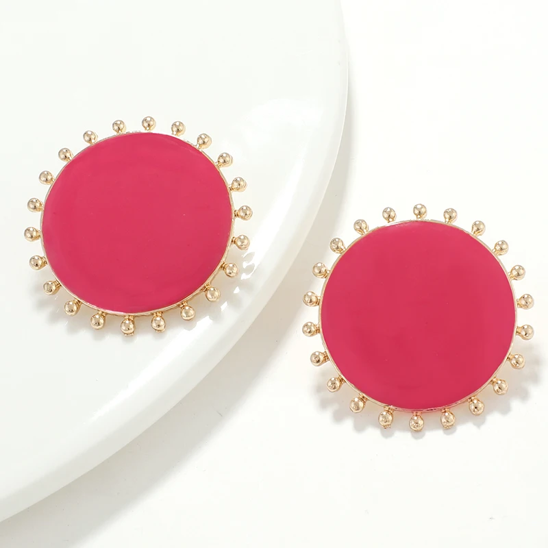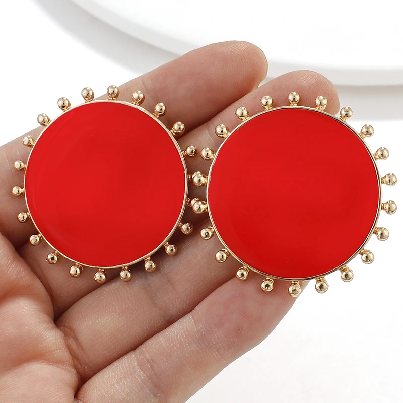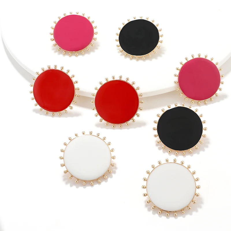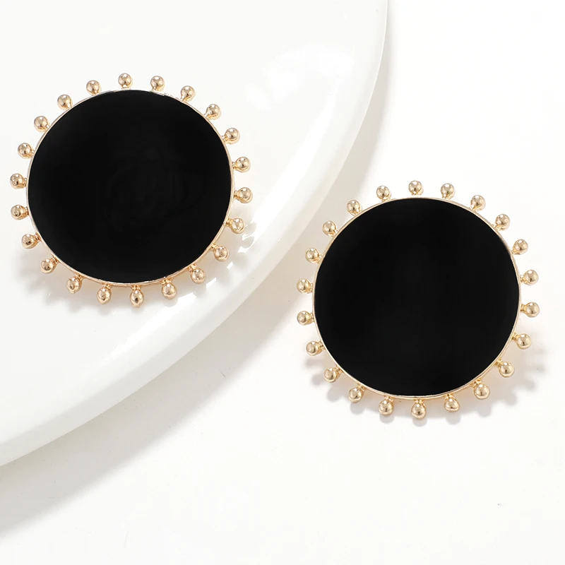 Женские круглые серьги-гвоздики AENSOA, с черной эмалью, в Корейском стиле, массивные ювелирные украшения для вечеринок