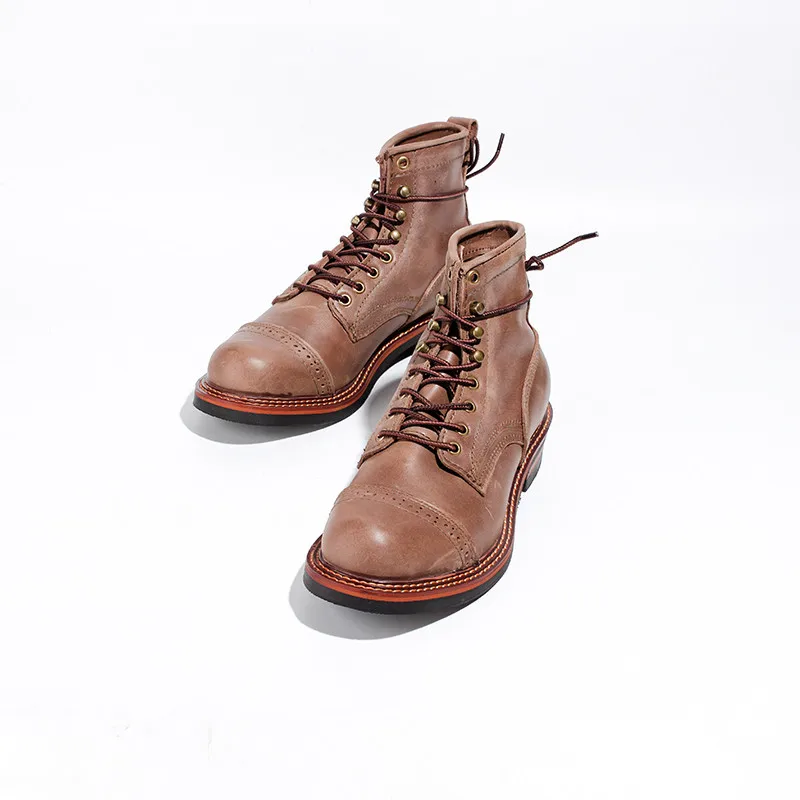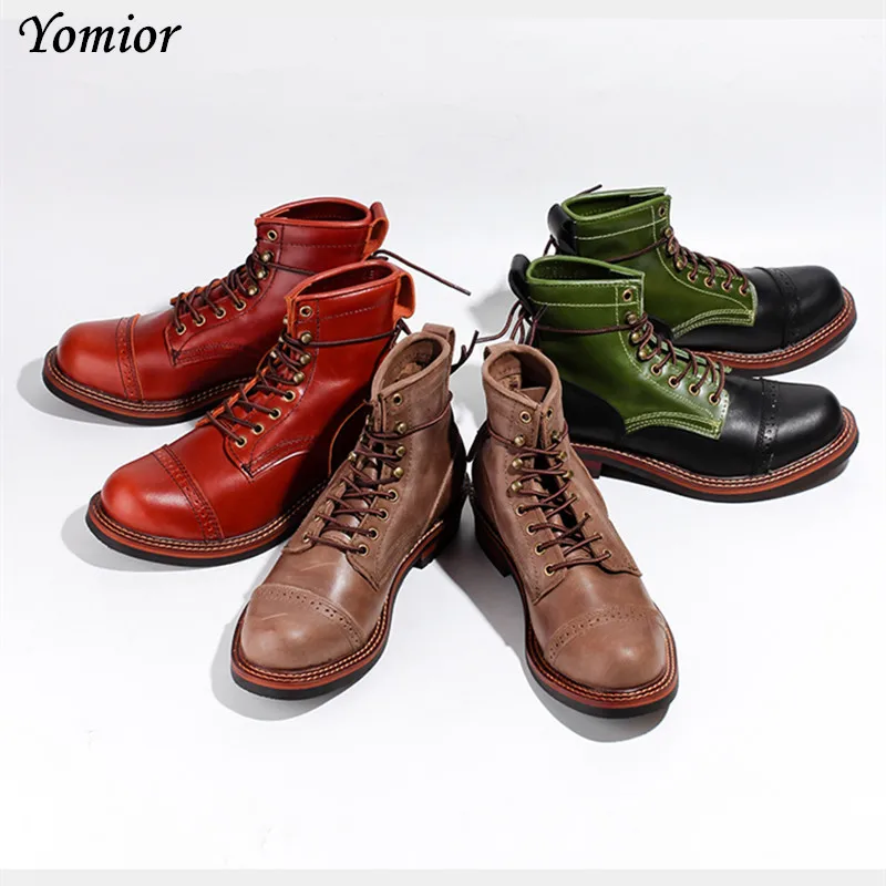Мужские брендовые зимние ботинки Yomior, белые винтажные рабочие ботильоны из натуральной кожи на шнуровке, мотоциклетные ботинки