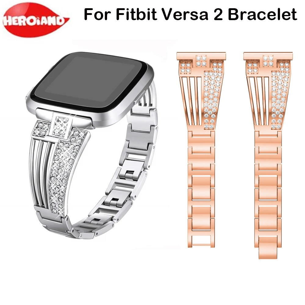 Ремешок металлический для наручных часов Fitbit Versa 2, сменный Браслет для Fitbit VersaVersa Lite Bling Стразы