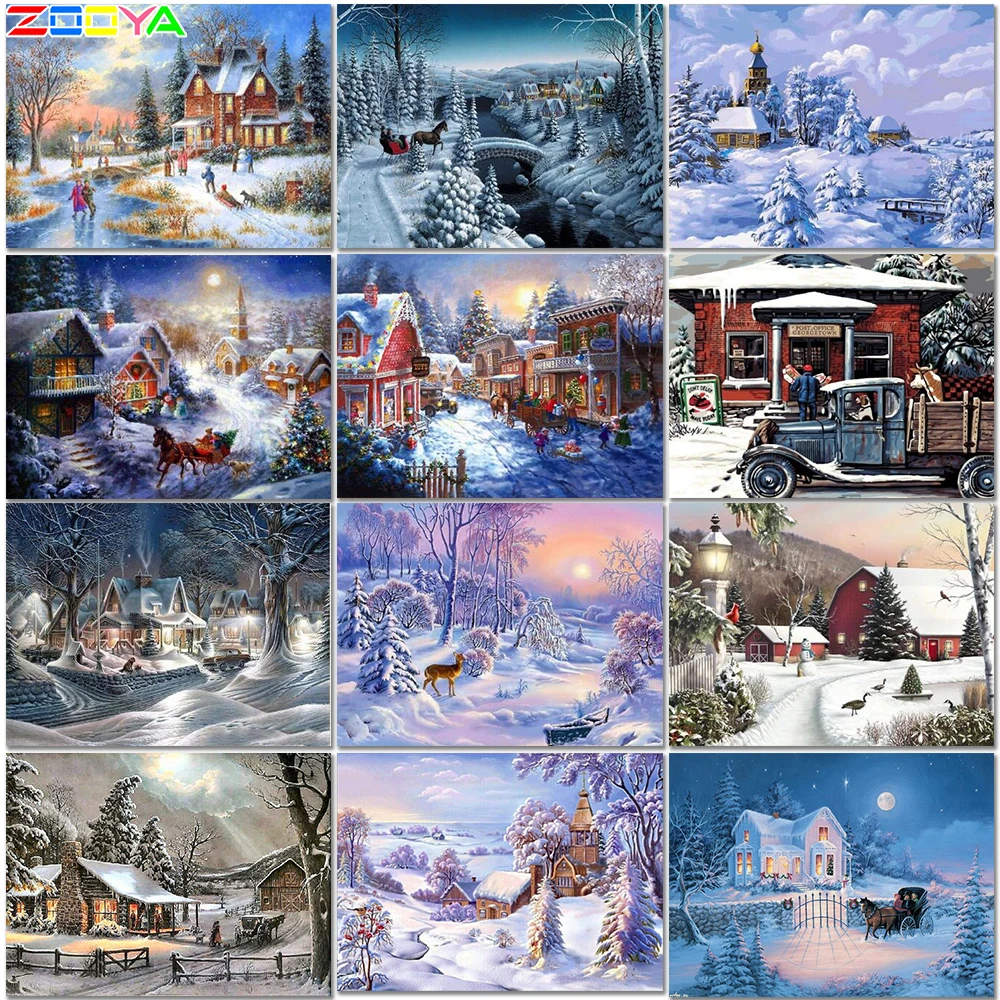 Zooya полный Diy круглая роспись из бриллиантов ручной работы зимний пейзаж Вышивка крестиком Алмазная Рождественская Алмазная вышивка мозаика Jh030