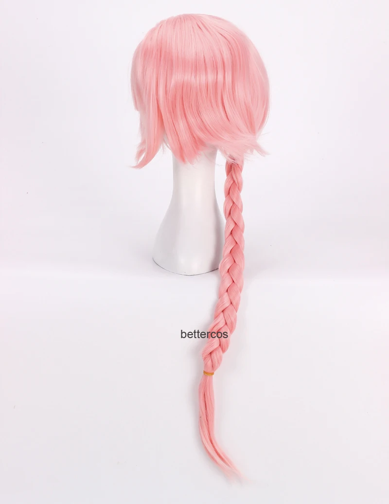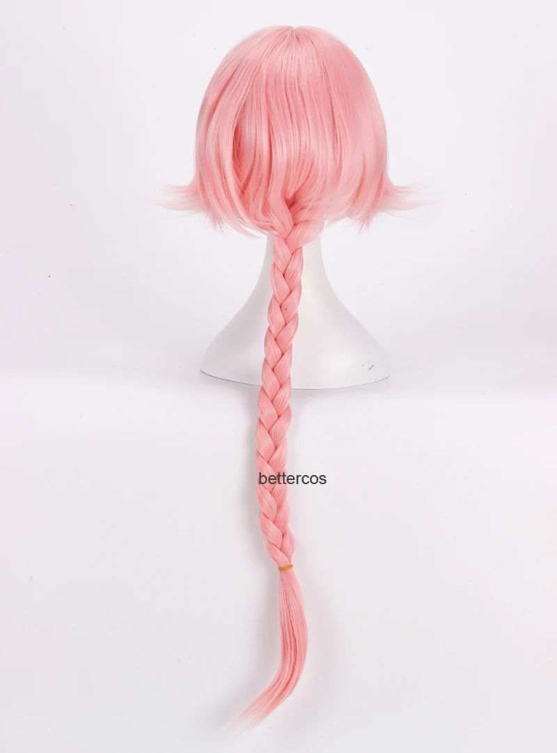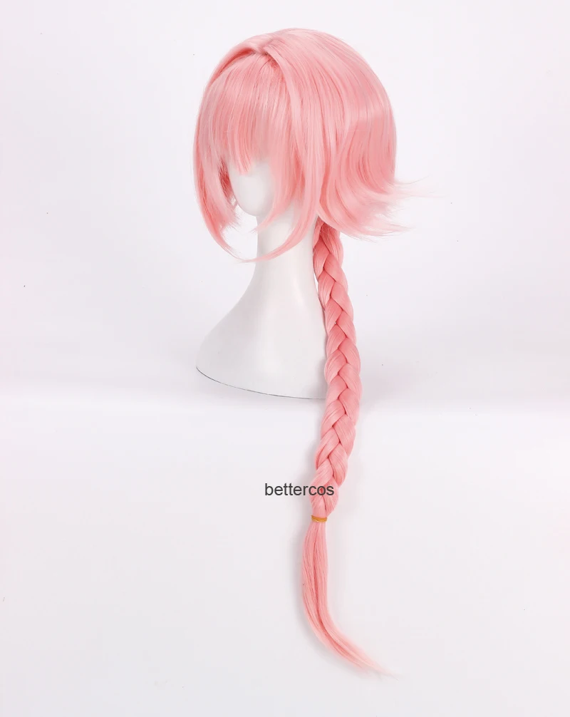 Парик для косплея Game Fate Apocryph Astolfo 75 см, розовый термостойкий синтетический парик + шапочка для парика + 3 черных банта