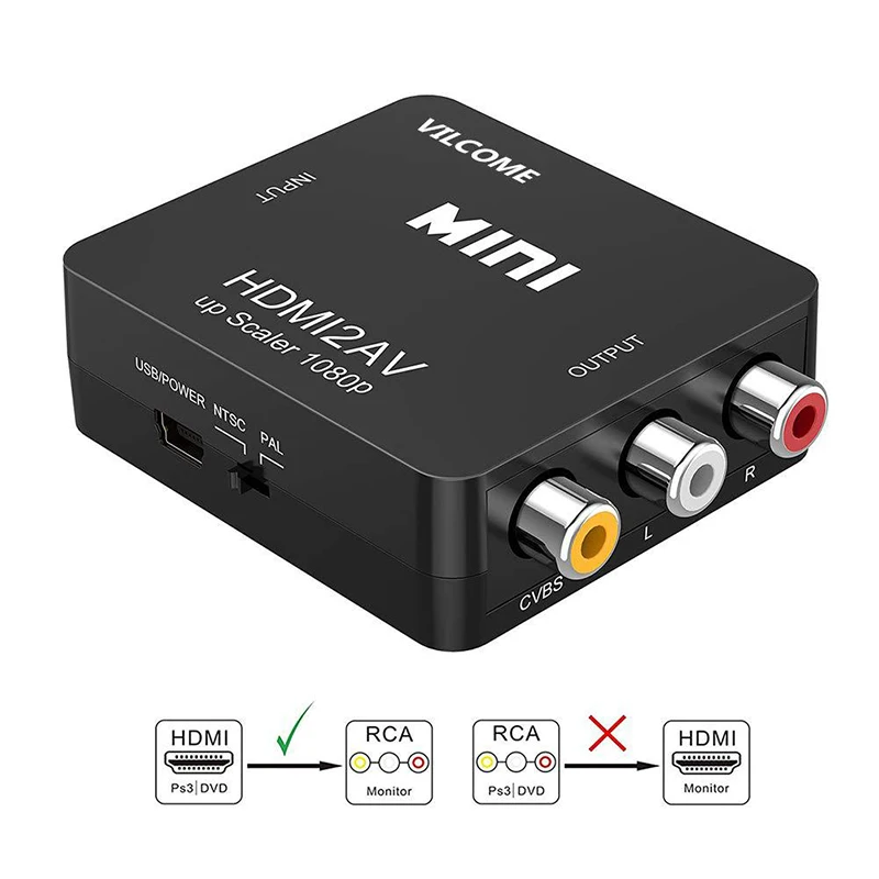 Конвертер HDMI в RCA видео 1080P HDMI2AV, композитный адаптер AV, конвертер с поддержкой NTSC PAL для ТВ, PS4, черный, белый
