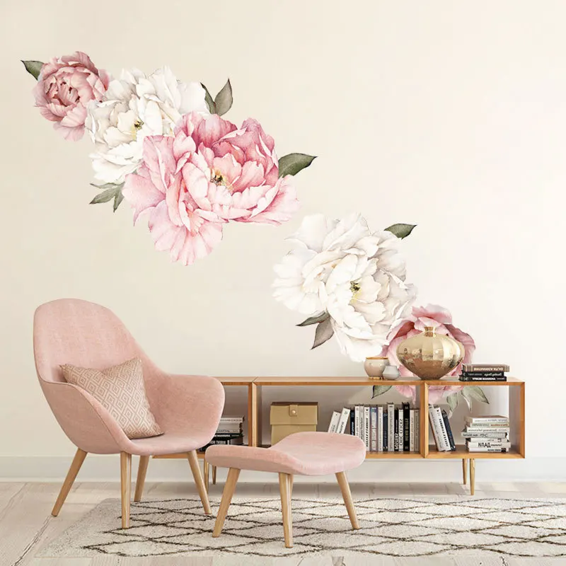 Акварель розовый белый пион розы наклейки на стену для детской комнаты гостиной спальни украшения дома Наклейка на стену домашний декор