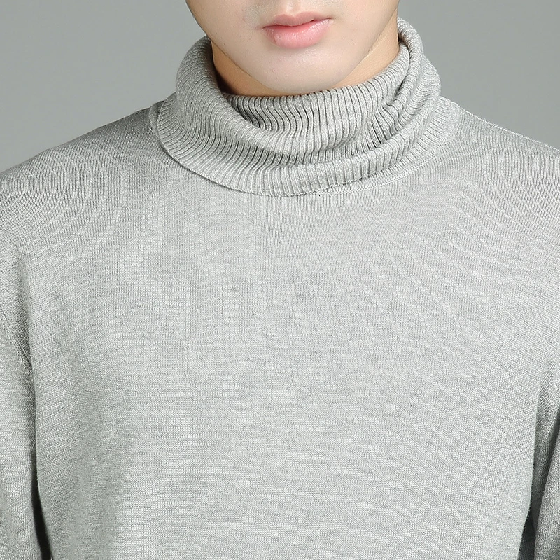 Однотонный мужской свитер с высоким воротником, повседневные пуловеры, Осенний Модный стильный свитер, однотонный облегающий трикотажный свитер в Корейском стиле, пальто с длинным рукавом