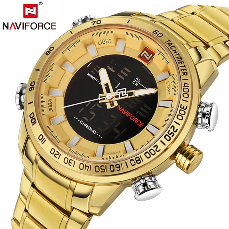 Часы наручные NAVIFORCE Мужские кварцевые, брендовые золотистые арм...