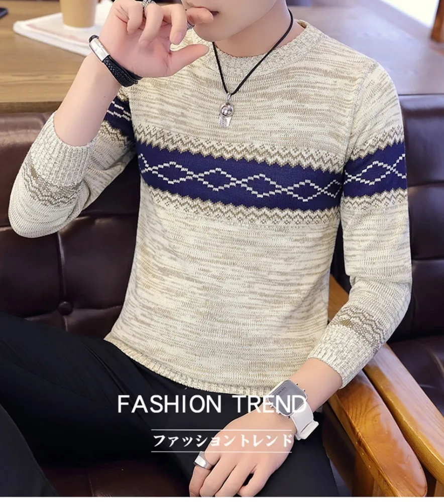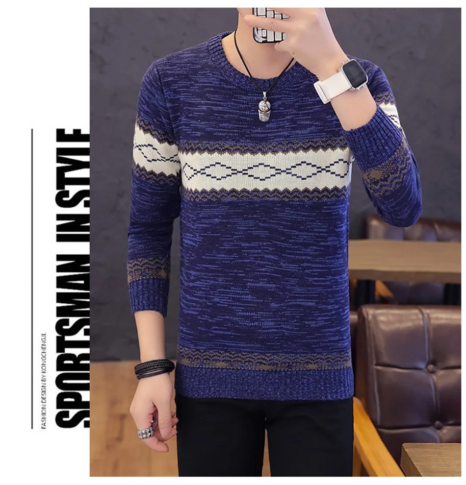Полосатые свитера и пуловеры, мужской вязаный свитер с длинным рукавом, высококачественные зимние пуловеры с круглым вырезом, теплые пальто из полиэстера