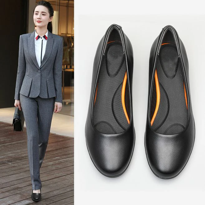 Туфли женские кожаные, на толстой подошве, с круглым носком, Нескользящие