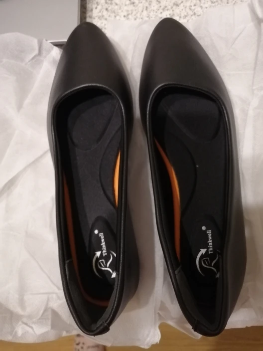 Мягкий верх, удобная колодка, симпатичная форма мыска. Каблучок не ощущается, подошва не скользкая, резиновая. Про размер: у меня стопа 253мм, и туфли впритык, запаса нет. Хотя на подошве написано 255. Возможно, это из-за объемной мягкой стельки. Только вынуть ее будет сложно, приклеено на совесть. В общем, туфли хорошие, для работы или "забегов по инстанциям" :)
