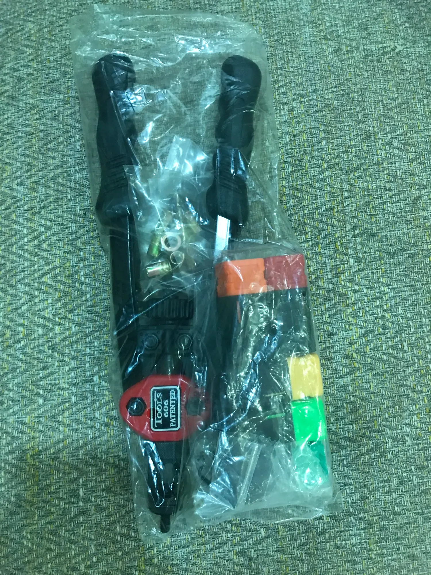 Нормальный заклепочник, работает. Сделан не из фольги. Приехал без набора заклепок, вернули часть суммы без проблем, т.к. всегда снимаю распаковку и это выручало много раз. С купоном достался за 1 576,36 руб. , вернули 137,85 руб. на эти деньги купил в местном магазине заклепок. Фоток не делал, все как в описании. Всем бобра !