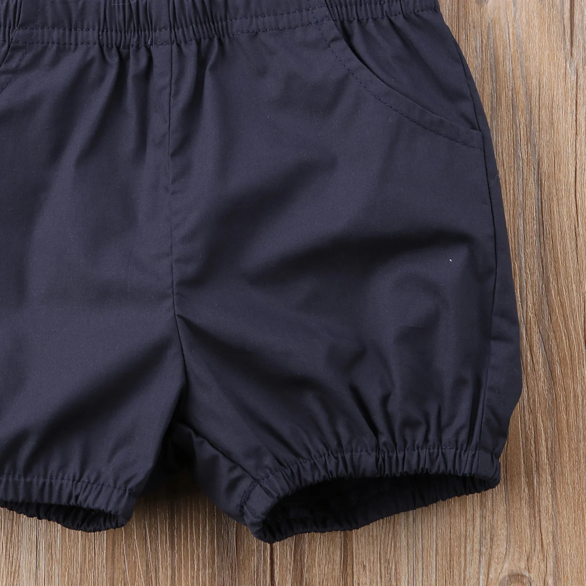 Комплект из 2 предметов, однотонная красивая рубашка с коротким рукавом и шорты на бретелях, одежда для маленьких мальчиков
