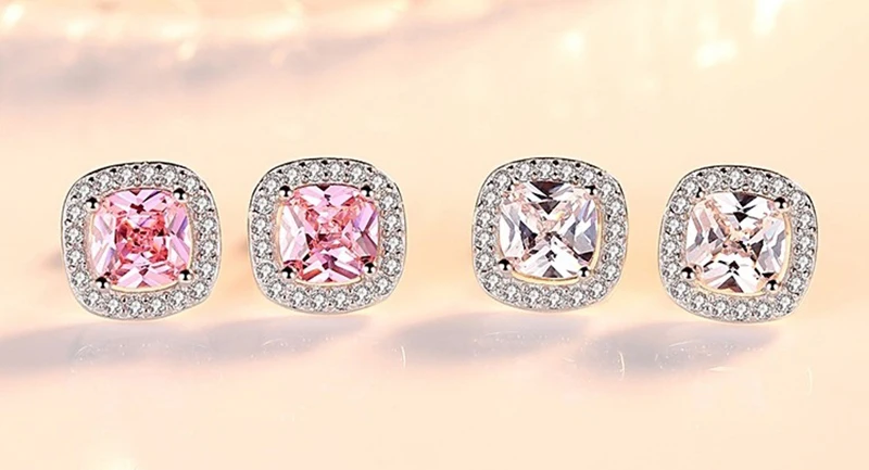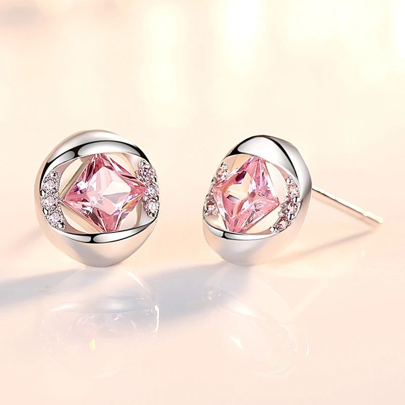 Милые романтические розовые серьги-гвоздики с кристаллами, геометрические маленькие Помолвочные серьги-гвоздики для девочек, милые ювелирные изделия для ушей