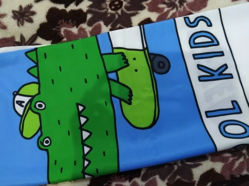 На доставку в Москву ушло чуть больше двух недель, но это с учётом новогодних праздников) Товар просто потрясающий! Картинка яркая чёткая, ткань синтетика, всё как в описании, отличное качество, в комплекте какие-то крепежи, но я их не пробовала - купила в подарок. Очень нравится этот смешной крокодил, товар рекомендую!