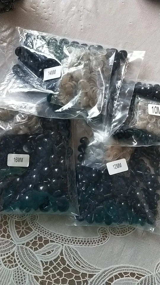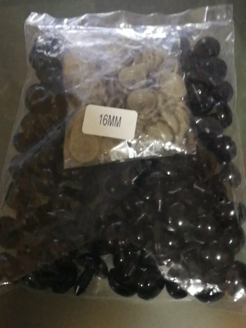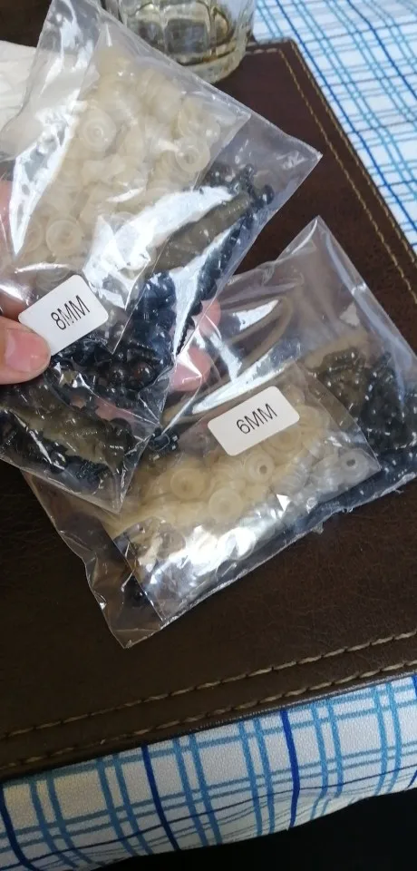 Заказ до Оренбурга шел с 19 августа по 10 октября. Обычные нормальные выпуклые глянцевые глаза. 103 глаза (черная деталь + ее заглушка). Только долго ждать было, а так качество нормальное. Даже заказала в другом магазине, что быстрее придет, получила вместе в одном конверте, оказалось, что у этих глаз заглушки покачественнее, чем в другом магазине. И сами глазки без зазубринок, чистенькие, без шероховатостей, нормального качества, хотя я думала, что везде все одинаково. А вот в другом магазине было хуже. Спасибо этому продавцу! Но хотелось бы доставку побыстрее.