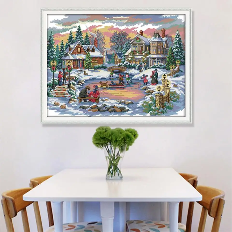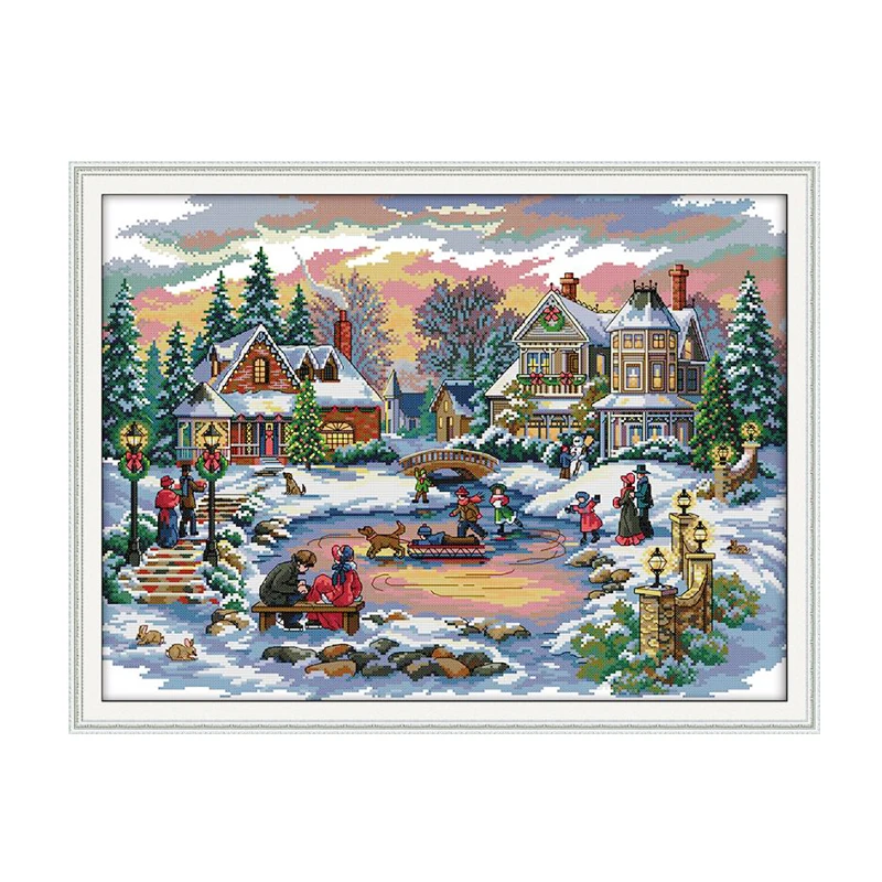 Joy Sunday Рождество в зимнем снежном пейзаже вышивка крестиком 11CT 14CT наборы для вышивки крестиком вышивка украшение подарок