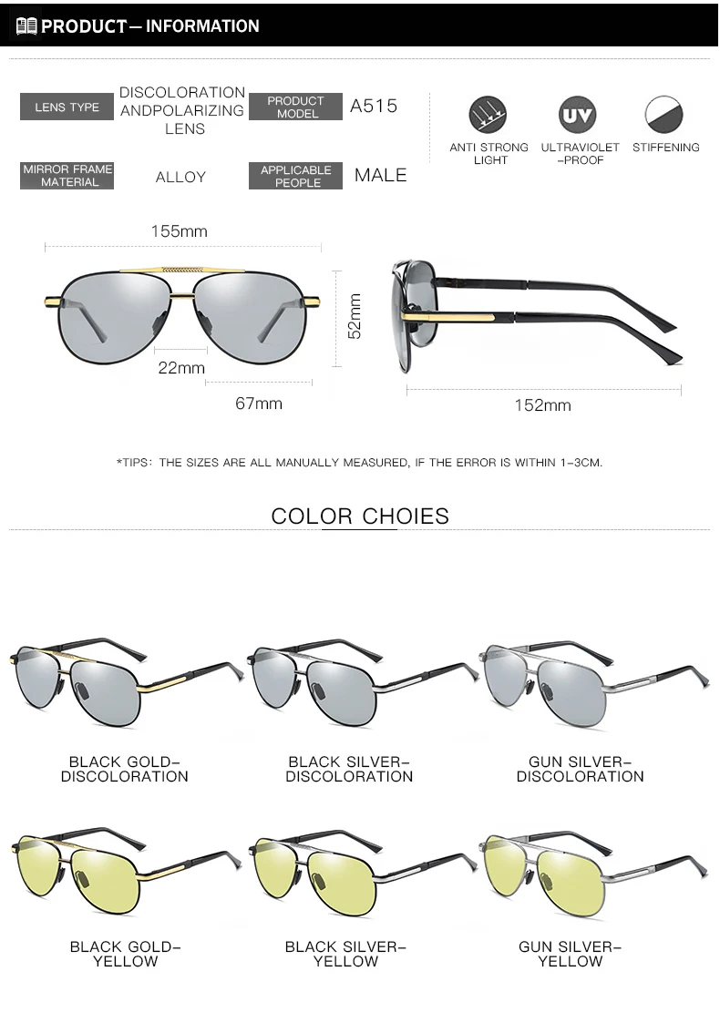 Солнцезащитные очки CoolPandas поляризационные для мужчин и женщин, авиаторы с фотохромными линзами, дневное и ночное видение