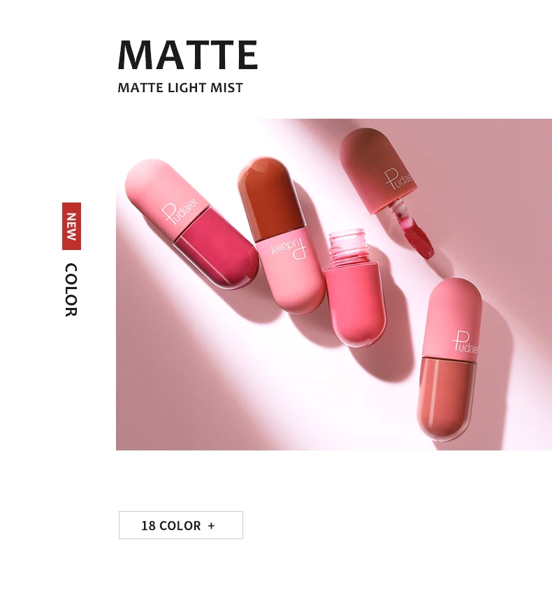 Портативная губная помада Pudaier в виде капсулы, 18 цветов, бархатная, противотуманная, долговечная, антипригарная, гладкая Матовая жидкая помада