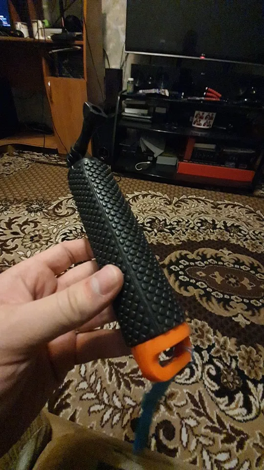 Пришло. Все как в описании. Было б конечно круче, если б шлейка была в цвет. Все выполнено довольно качественно и приятно. Чёрное- это не резина, а что-то пористое наподобие уплотнителя. В руке приятно и очевидно не скользко когда намокнет