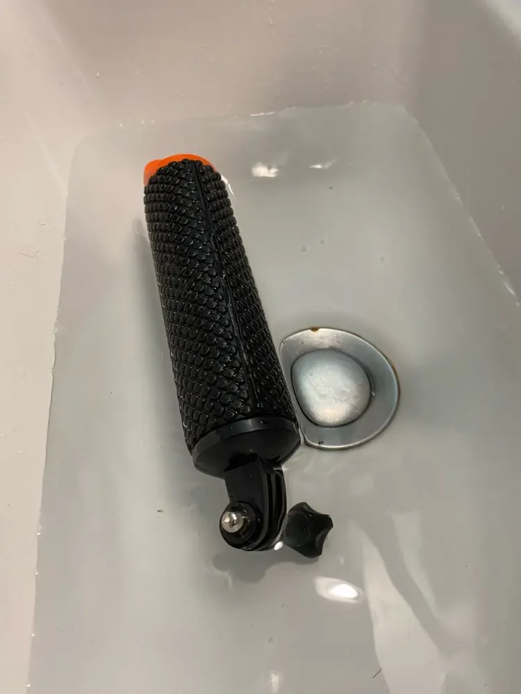 Хорошая ручка, камера с ней в ванне не тонет. Летом опробую в море