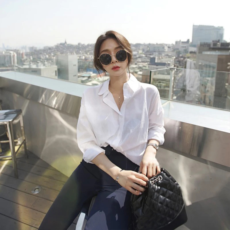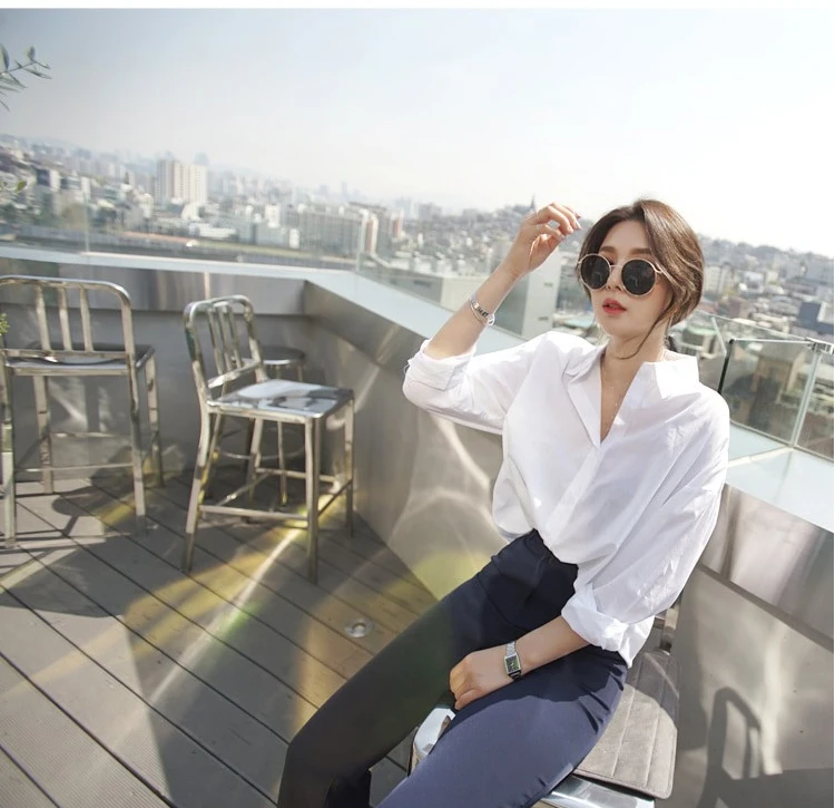 Блузка женская шифоновая, однотонная, с отложным воротником, длинным рукавом, T9O904F