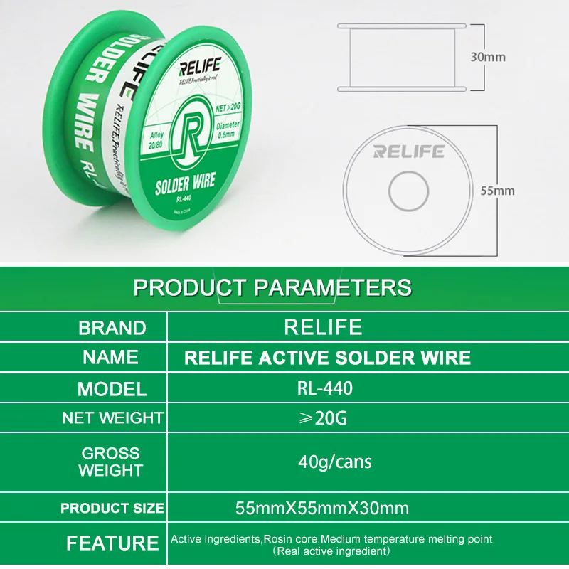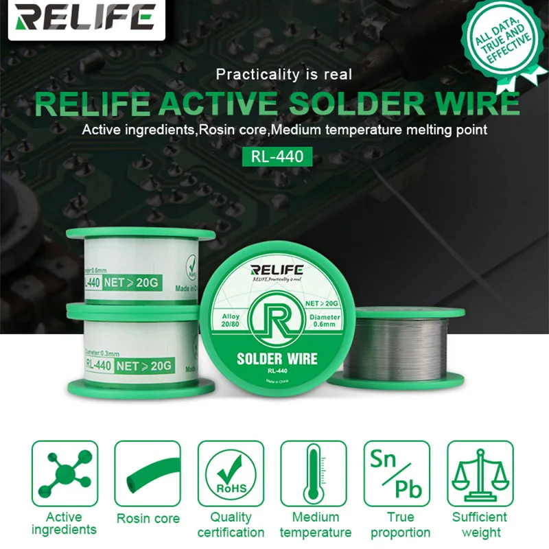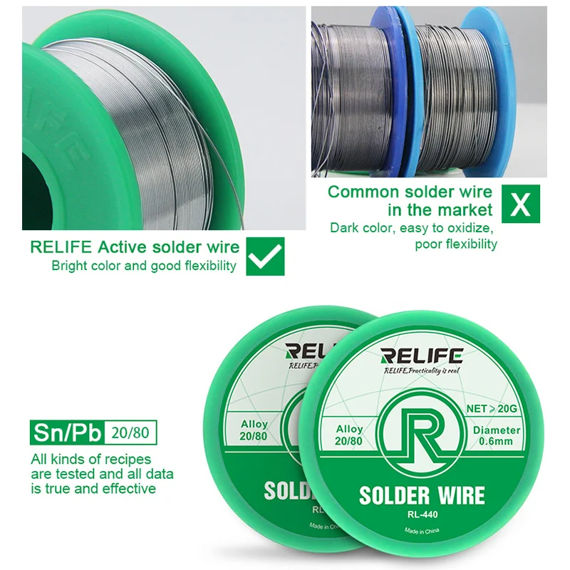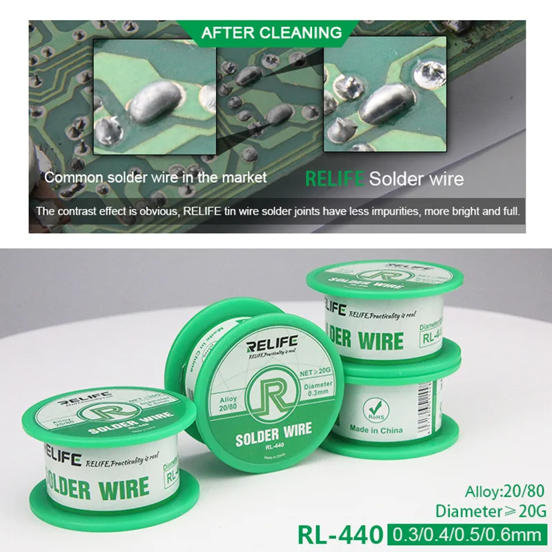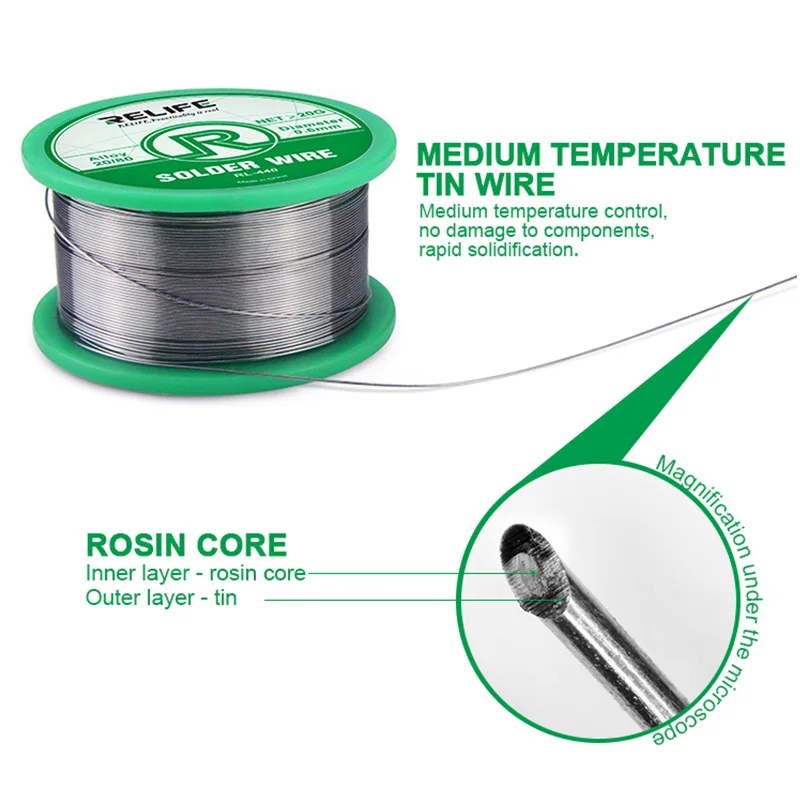 Проволока для пайки RELIFE Sn20Pb80, Оловянная проволока 0,30,40,50,6 мм, провод для пайки с канифольным ядром, катушка для сварки