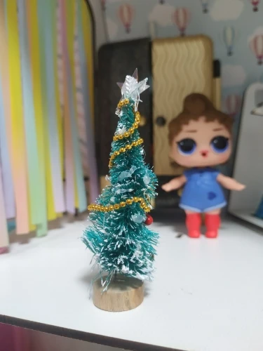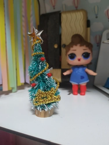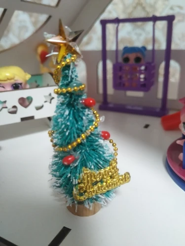 Ялиночка так собі - клею більше,ніж ялинки)) пом'ята вся і несиметрична) Їхала місяць в Київ. Брала доці прикрашати будиночок для лол до Нового року. По розміру ялинка підійде для лол little sisters, для тих самих малих пупсіків. Якщо не придиратись,то за долар норм))