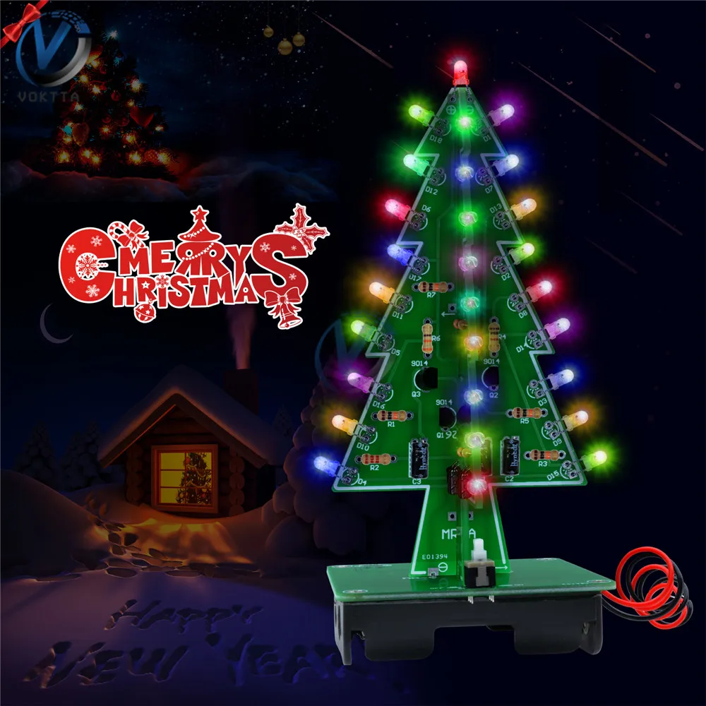 Три/семь цветов, набор деталей для рождественской елки, сделай сам, Подарочная елка, Рождественская елка, 3D светодиодный Комплект деталей для вспышки, набор для развлечения, подарок