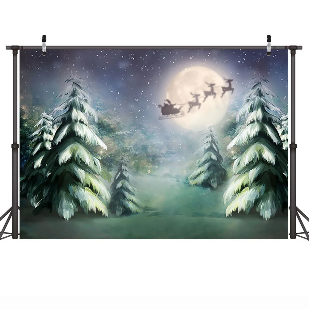 Рождественский фон для фотосъемки Рождественская вечеринка олень ночное небо фон для фотосъемки картина зимняя фотография