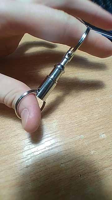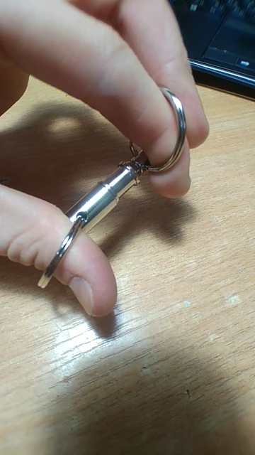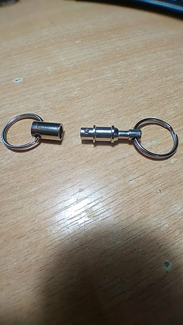 Боже, какая крутая штука. Я и не знал, что здесь задействован хитрый механизм размыкания замка. В собранном виде разъединить невозможно (скорее проволочные стальные кольца раскрутятся). Для размыкания замка необходимо нажать на кнопку и потянуть за корпус (а не за кнопку) Годная штука, я доволен!