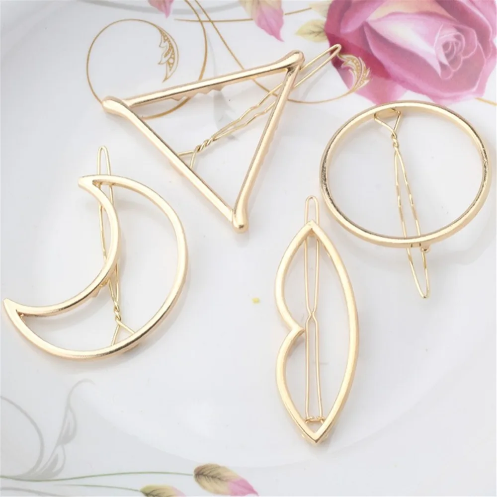 Модные зажимы для волос из сплава для женщин и девочек, Геометрическая металлическая повязка для волос, луна, треугольник, круги, заколка, аксессуары для волос