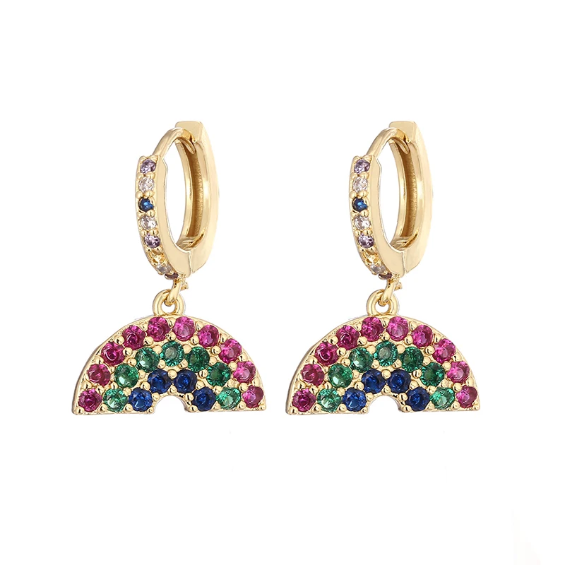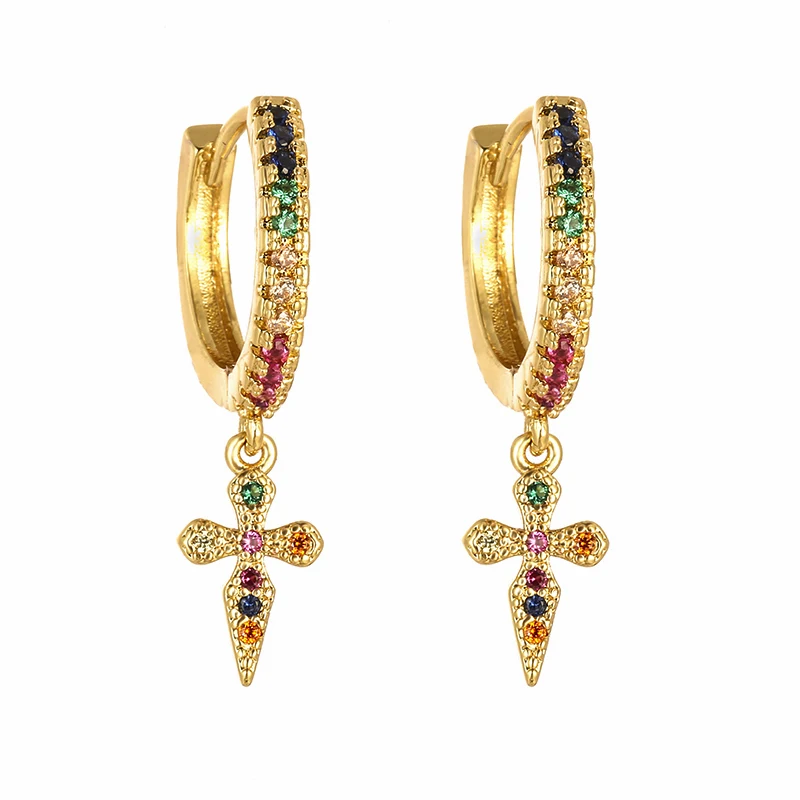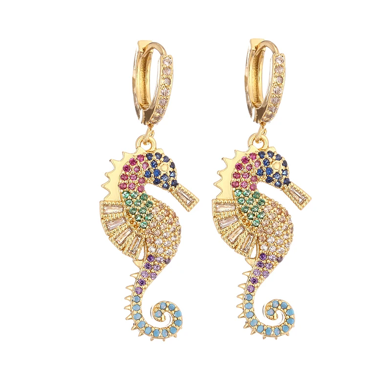 Женские золотые радужные серьги-подвески, медные серьги на удачу, крест в виде сердца, змеи, рук, морского конька, разноцветные фианиты для женщин