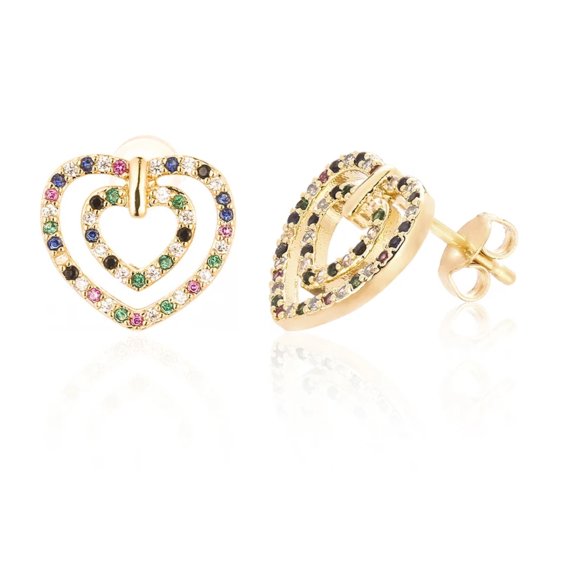 Женские серьги-гвоздики с круглым сердечком, из меди и фианита
