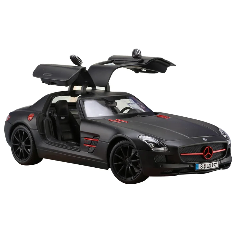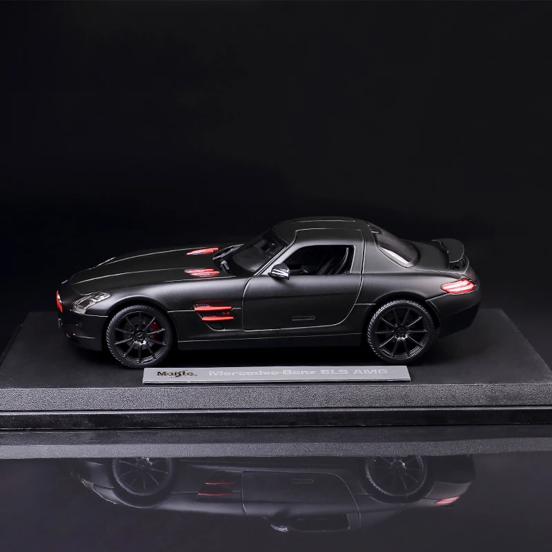 Модель автомобиля Maisto 1:18 Mercedes-Benz SLS AMG, черная модель автомобиля из сплава, имитация украшения автомобиля, коллекционная игрушка в подарок, литье под давлением