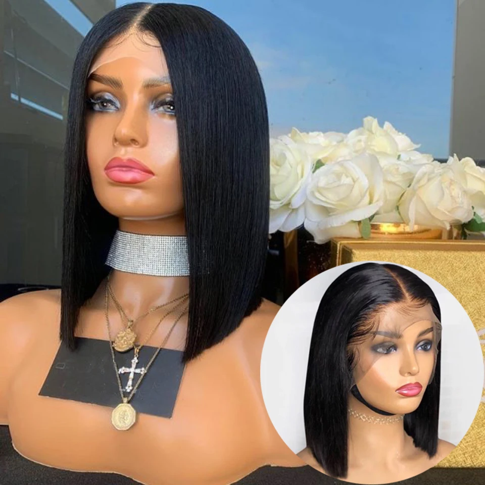150% плотность короткий боб фронта шнурка человеческих волос парики
