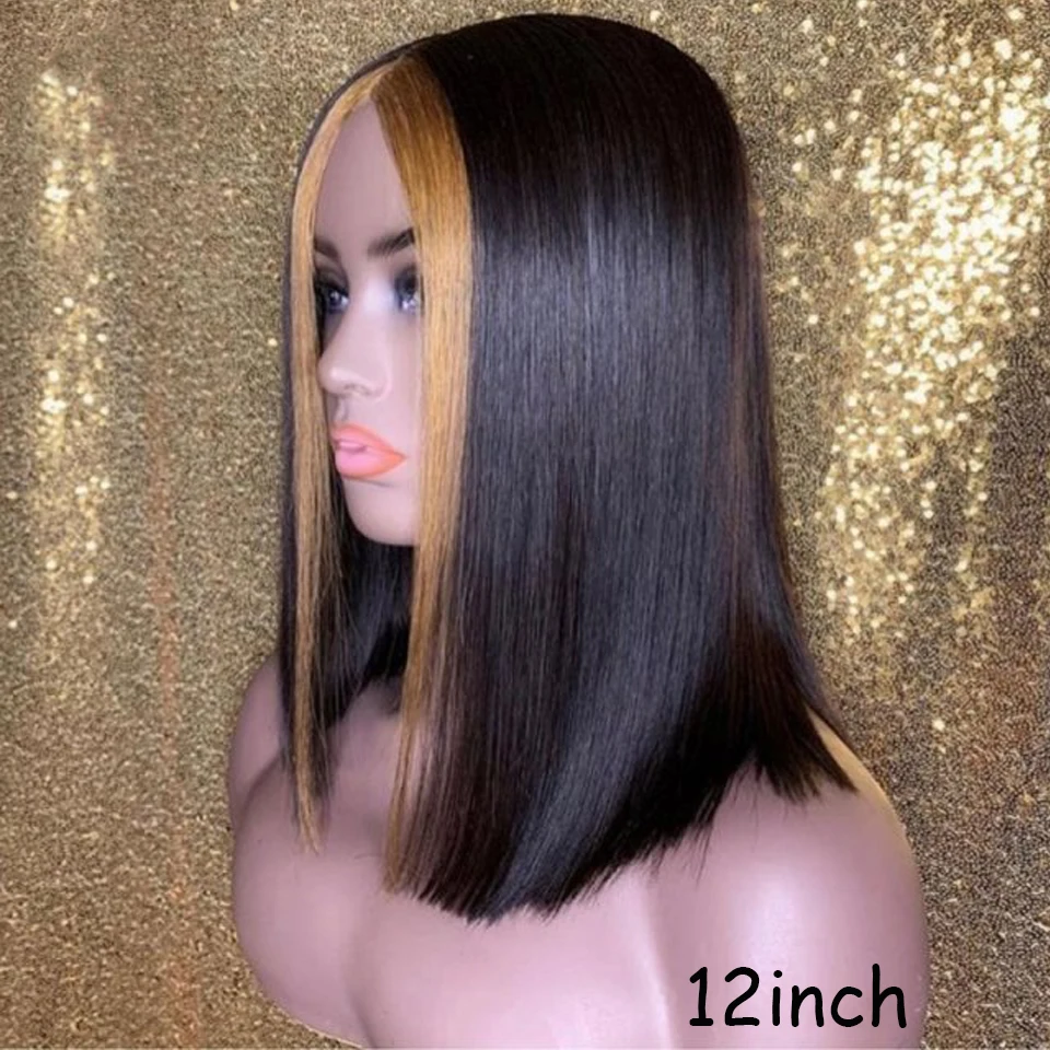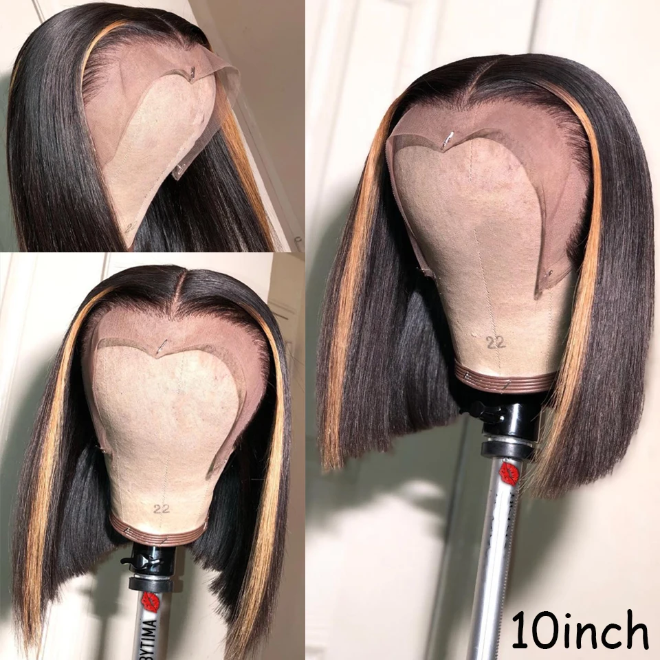 150% 13x6 парики из человеческих волос на сетке спереди для женщин #27 хайлайтер парик бразильский Реми медовый блонд Омбре короткие парики на сетке спереди
