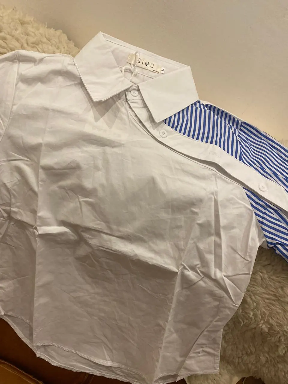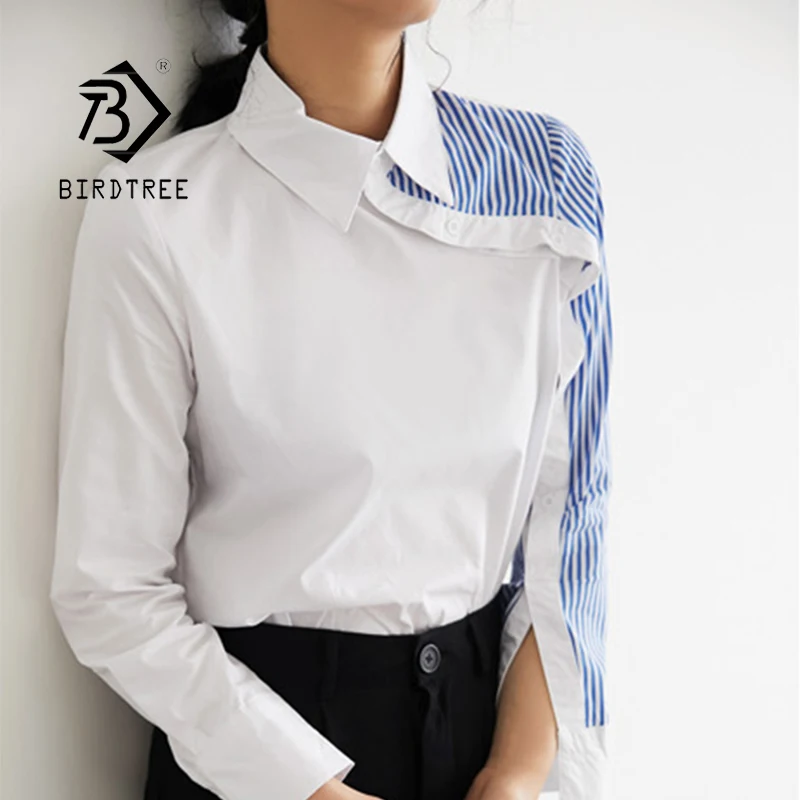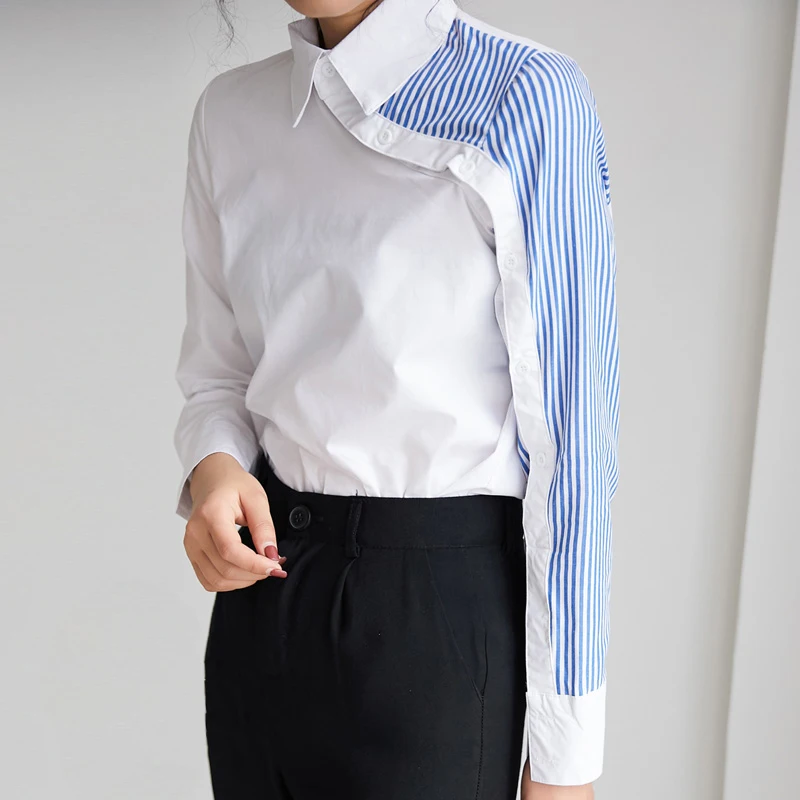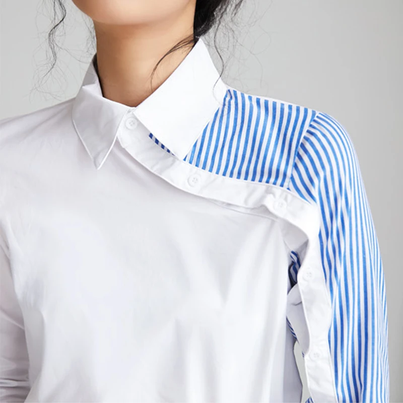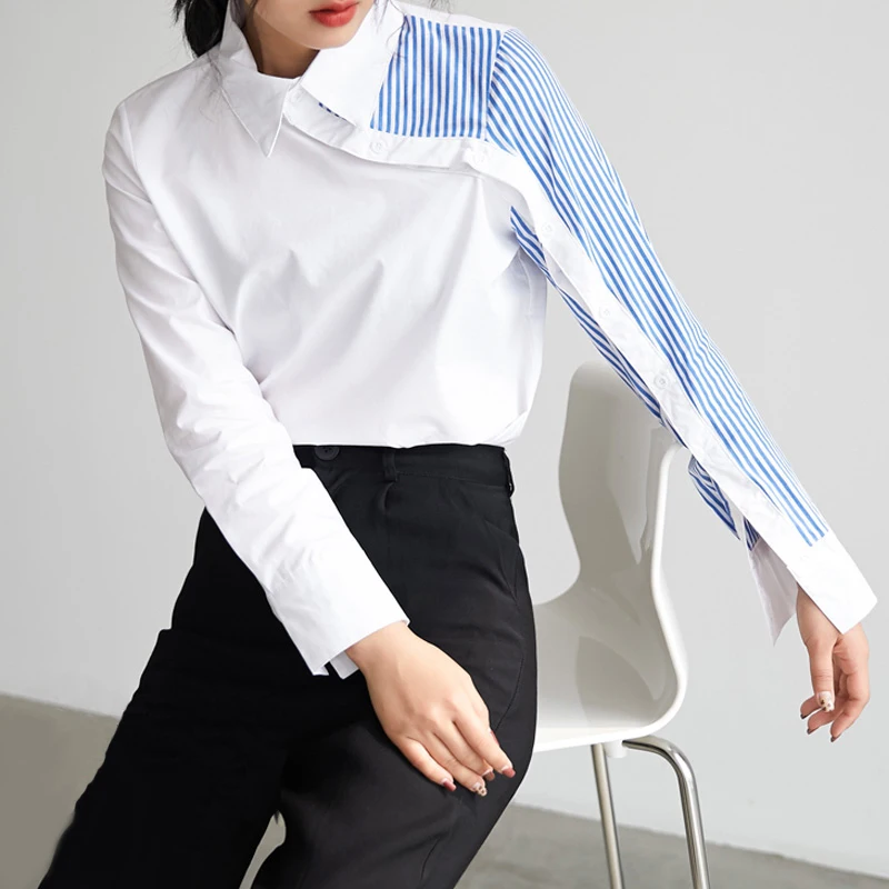 Новое поступление, женская белая блузка с отложным воротником, в полоску, в стиле пэчворк, элегантная шикарная женская блузка в Корейском стиле, T9O908F