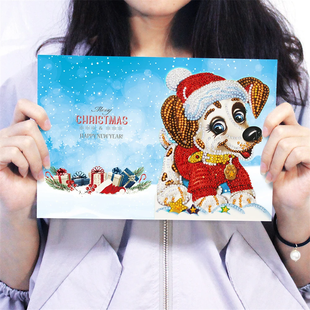 MOONCRESIN рождественские открытки, алмазная живопись, Санта-Клаус 5D, сделай сам, алмазная фотография собаки, поздравительные открытки