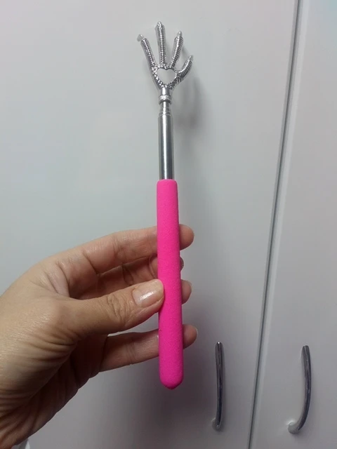 Чесалка классная, выдвигается как антенна у радиоприемника, так же компактно складывается. Металл прочный, не гнется, ручка очень приятная на ощупь, как бархатная, но плотная. В общем вся семья довольна, спасибо Желаю процветания магазину и побольше хороших клиентов.
