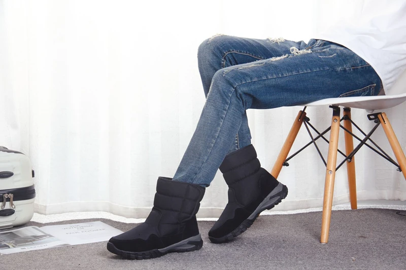 Мужские ботинки на липучке, зимние водонепроницаемые ботинки с утолщенным мехом, Нескользящие, большие размеры 40 - 48