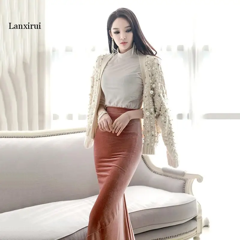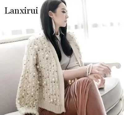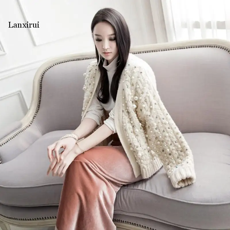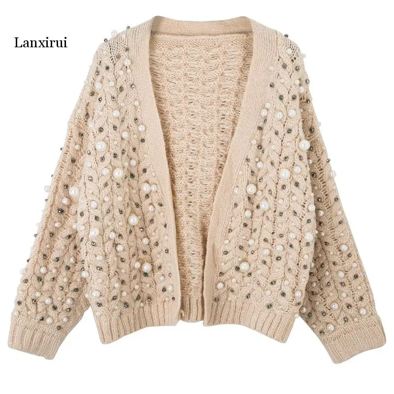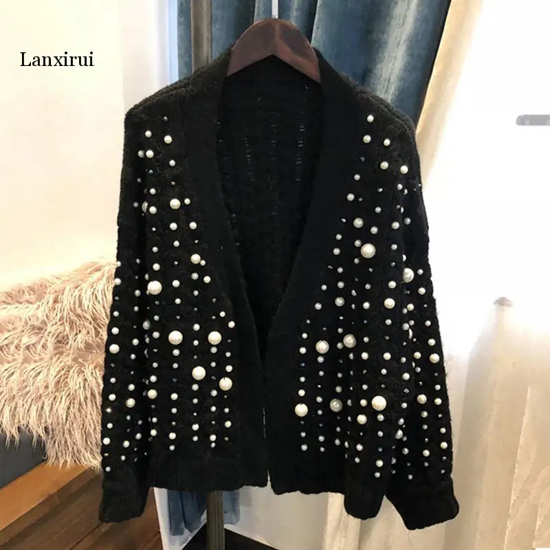 Осенне-зимний модный плотный кардиган Стразы с жемчужинами, свитер,...