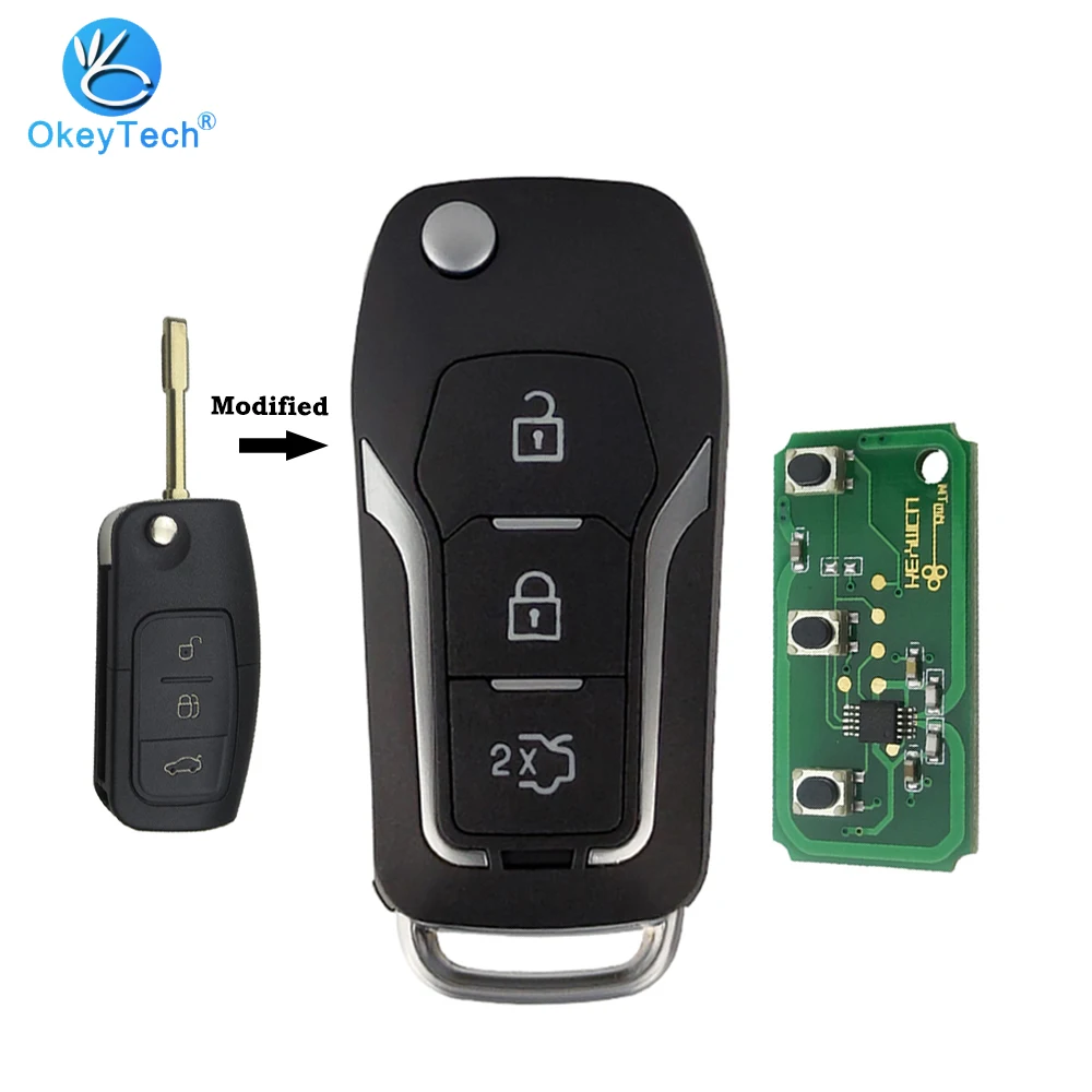 Складной ключ OkeyTech с 3 кнопками, модифицированный дистанционный ключ 433 МГц FO21 Blade 4D634D60, чип для Ford Mondeo Mk4 Mk7 Fiesta Focus Ranger