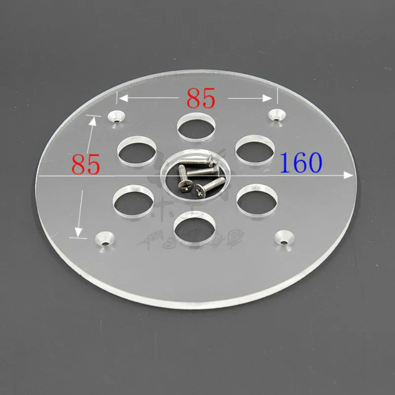Расстояние между просверленными отверстиями 85 мм (или вы можете сверлить самостоятельно, в соответствии с базой маршрутизатора)