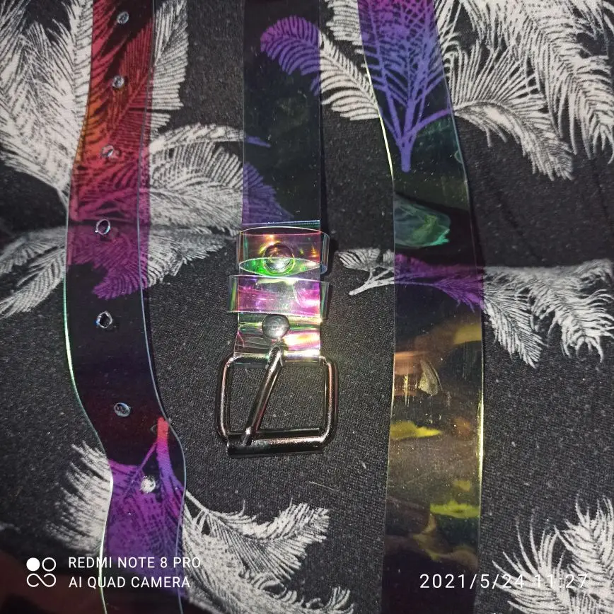 Ремень женский, прозрачный, голографический, с пряжкой со штырьком, широкий, невидимый, в стиле панк, новинка 2021